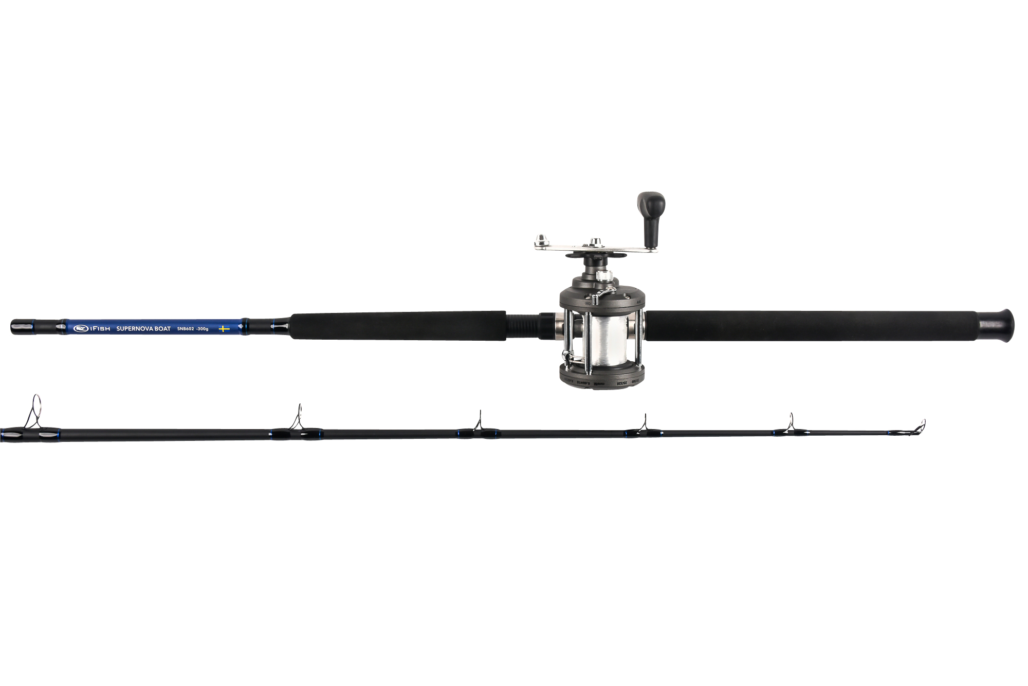 IFISH Havsfiskeset Öresund 6'. Båtfiskeset med 180cm långt 2-delat spö för beten upp till 300g och kraftig rulle med påspolad nylonlina.