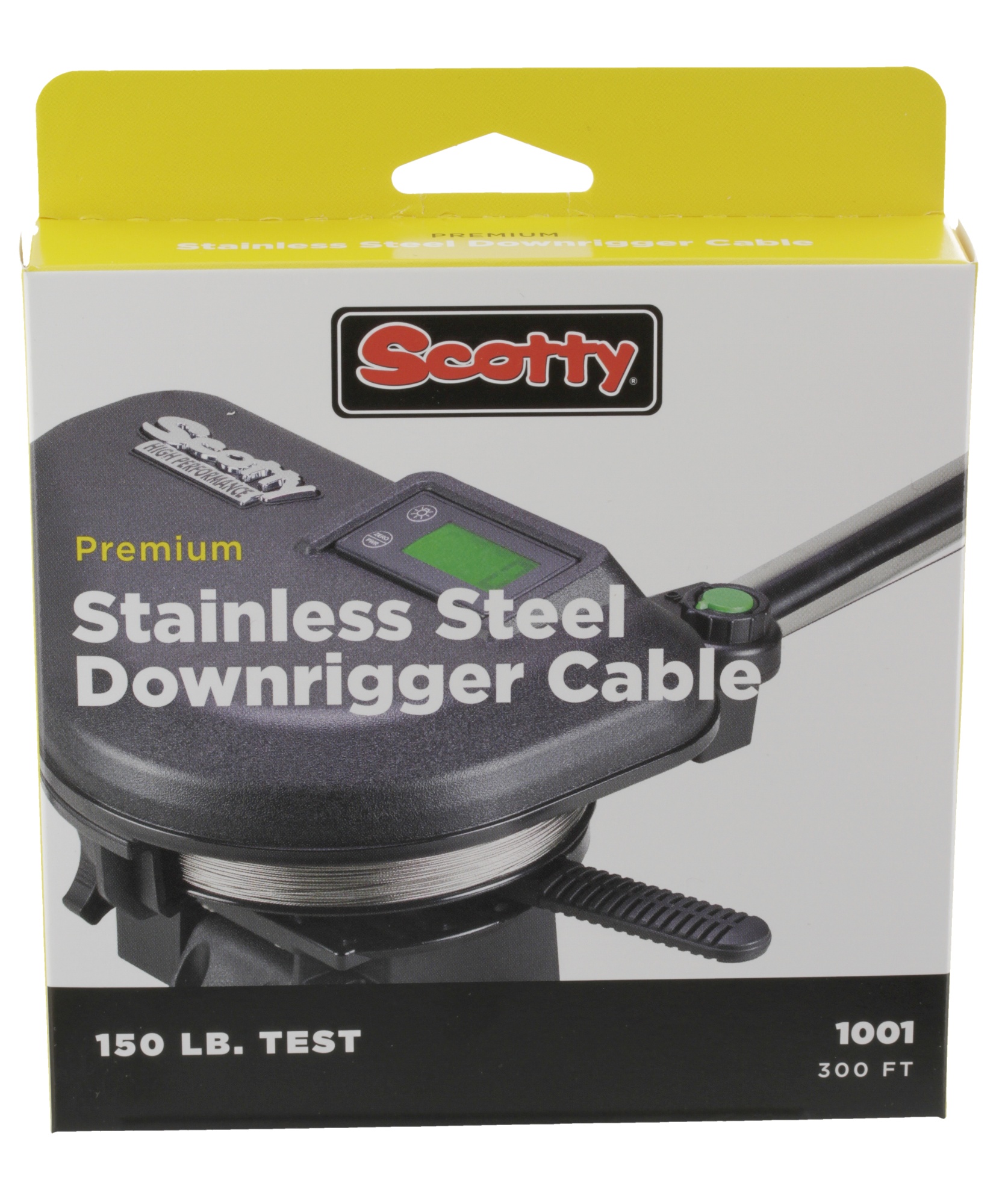 Scotty 1001 Downrigger Cable 91m. Djupriggswire i rostfritt stål med 150 lb, 67,5kg dragstyrka. Inkluderar kit med fästen. Längd 91 meter.