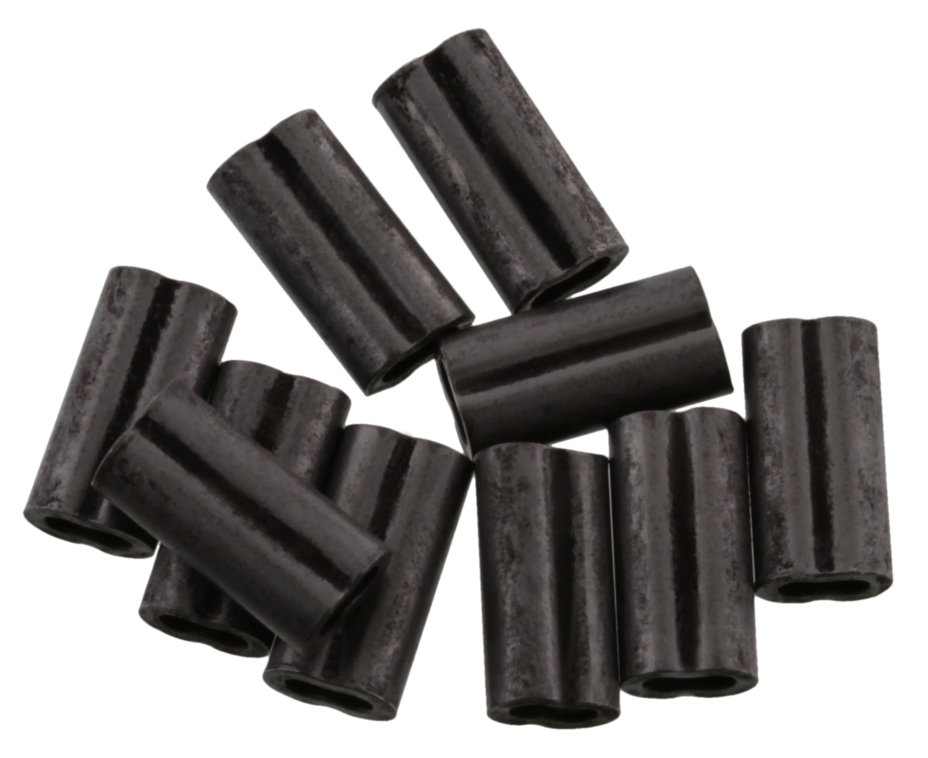 Scotty 1011 Wirelås. Dubbla krymphylsor i svart mässing för att sammanfoga wire eller grövre nylonlina. 10-pack.