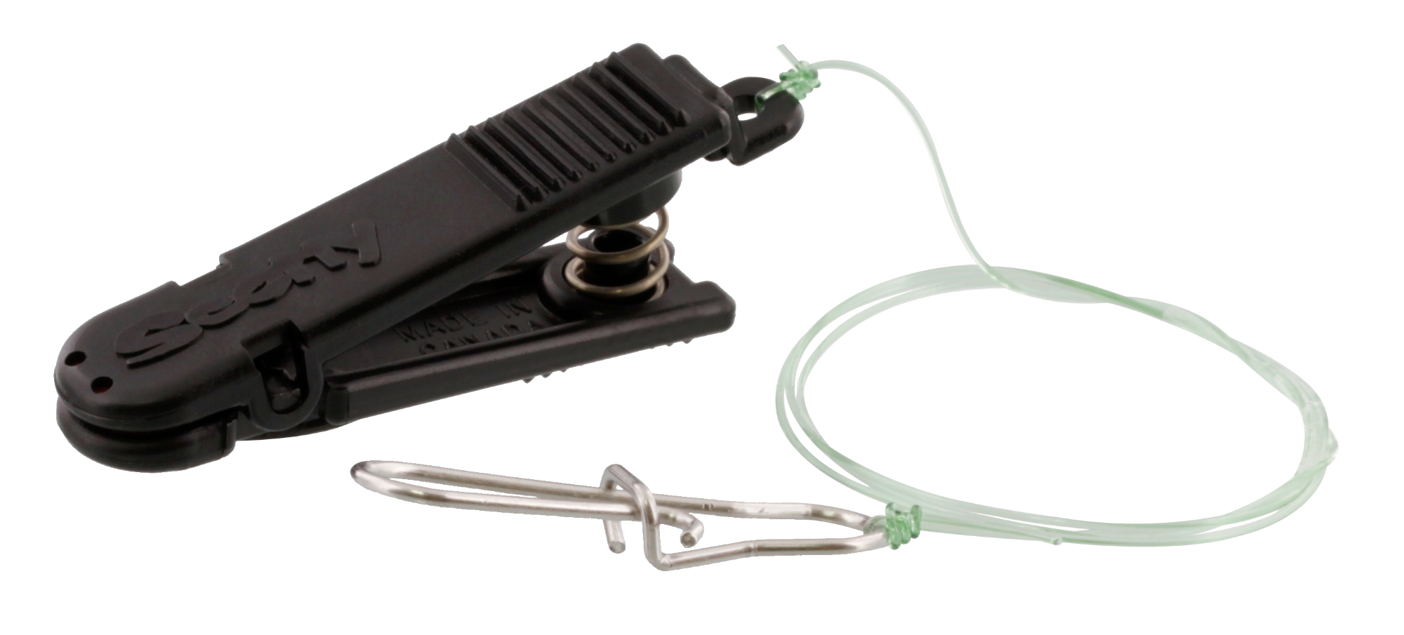 Scotty 1047 Mini Snapper. Utlösare för lättare fiske med djuprigg. Mini Snapper har 45cm lång tafs och hake som fästs på trollinglodet. Lämplig för fiske med Scotty's djupriggar 1071 och 1073. Linutlösaren är den kritiska länken mellan djupriggen och spöet och om den inte fungerar som den ska så riskerar man att tappa både tid och fisk. Linan greppas mellan de mjuka kuddarna och inställningen görs genom att linan flyttas in eller ut mellan käftarna. Scotty’s patenterade justering gör att motståndet kan justeras till det dubbla om så är nödvändigt.