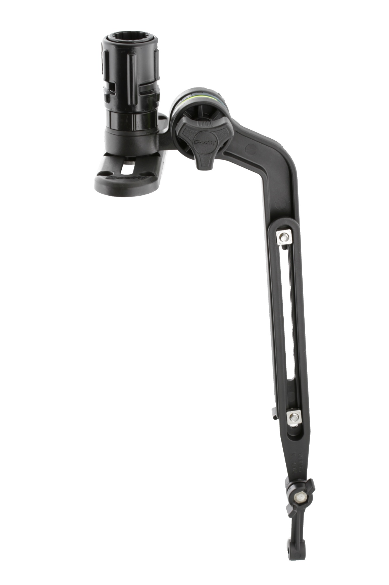 Scotty 141 Transducer Arm w Gear Head. Teleskopisk hållare för ekolod och givare, lämplig för kajak, SUP eller mindre båtar. Justerbar längd mellan 29 & 45cm. Kan roteras 360 grader och levereras med Scotty 415 Slip Discs som möjliggör microjustering. I förpackningen ingår Scotty 438 Gear Head samt Scotty 440-4 lågprofilskena.