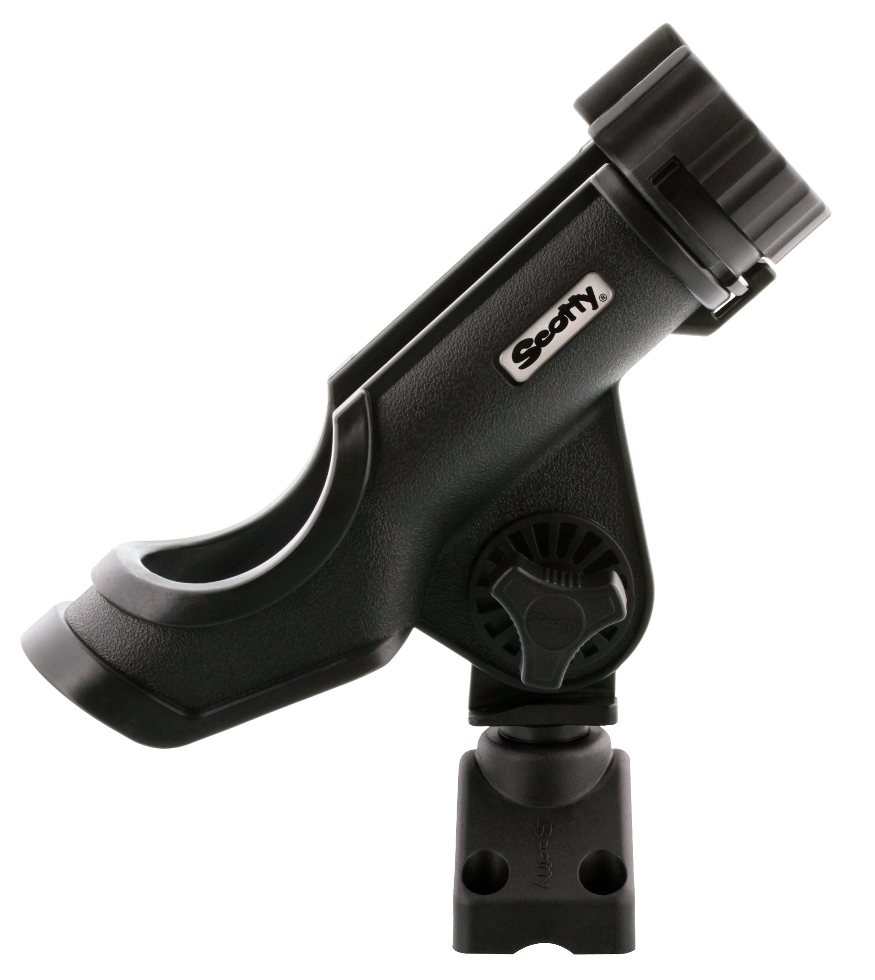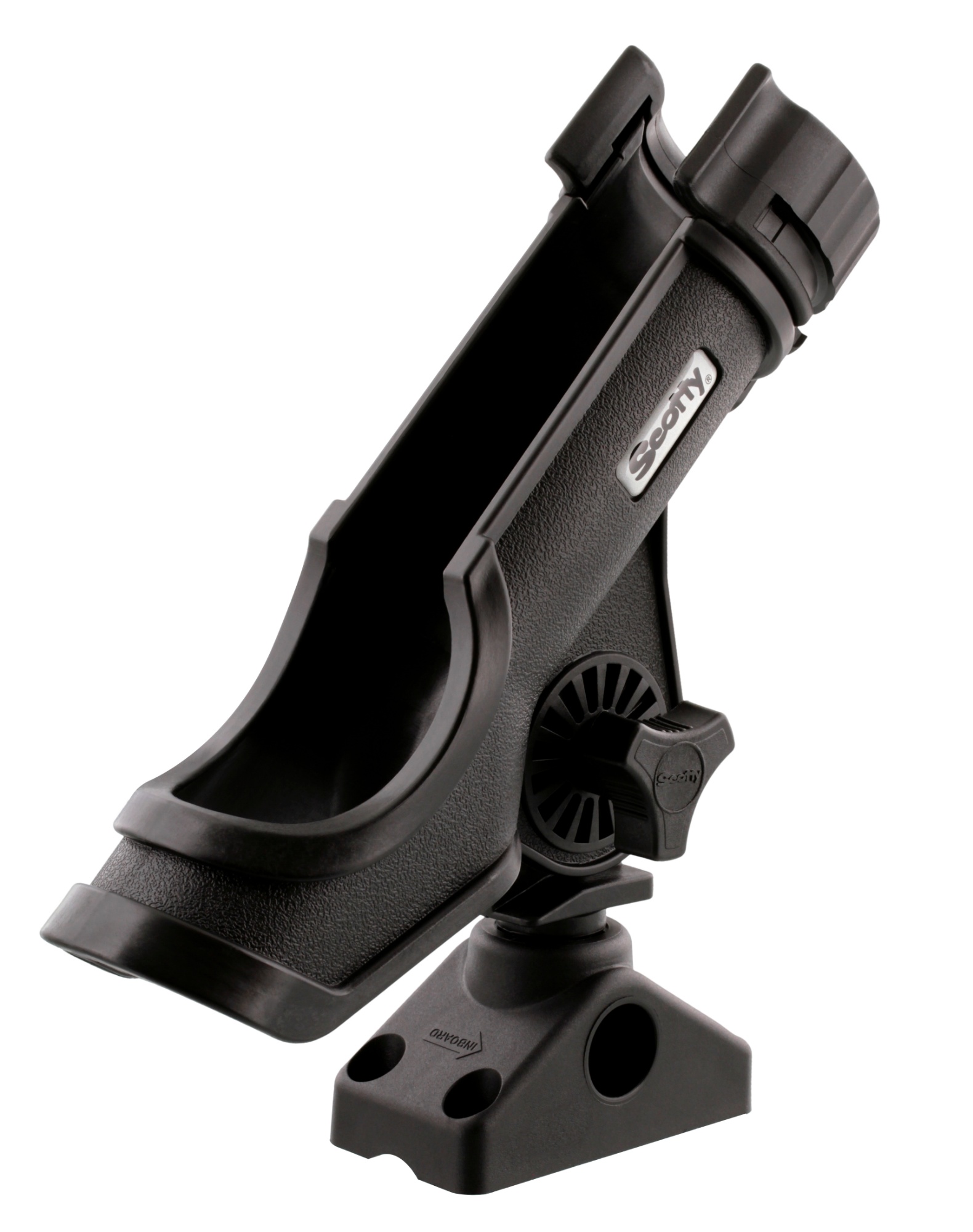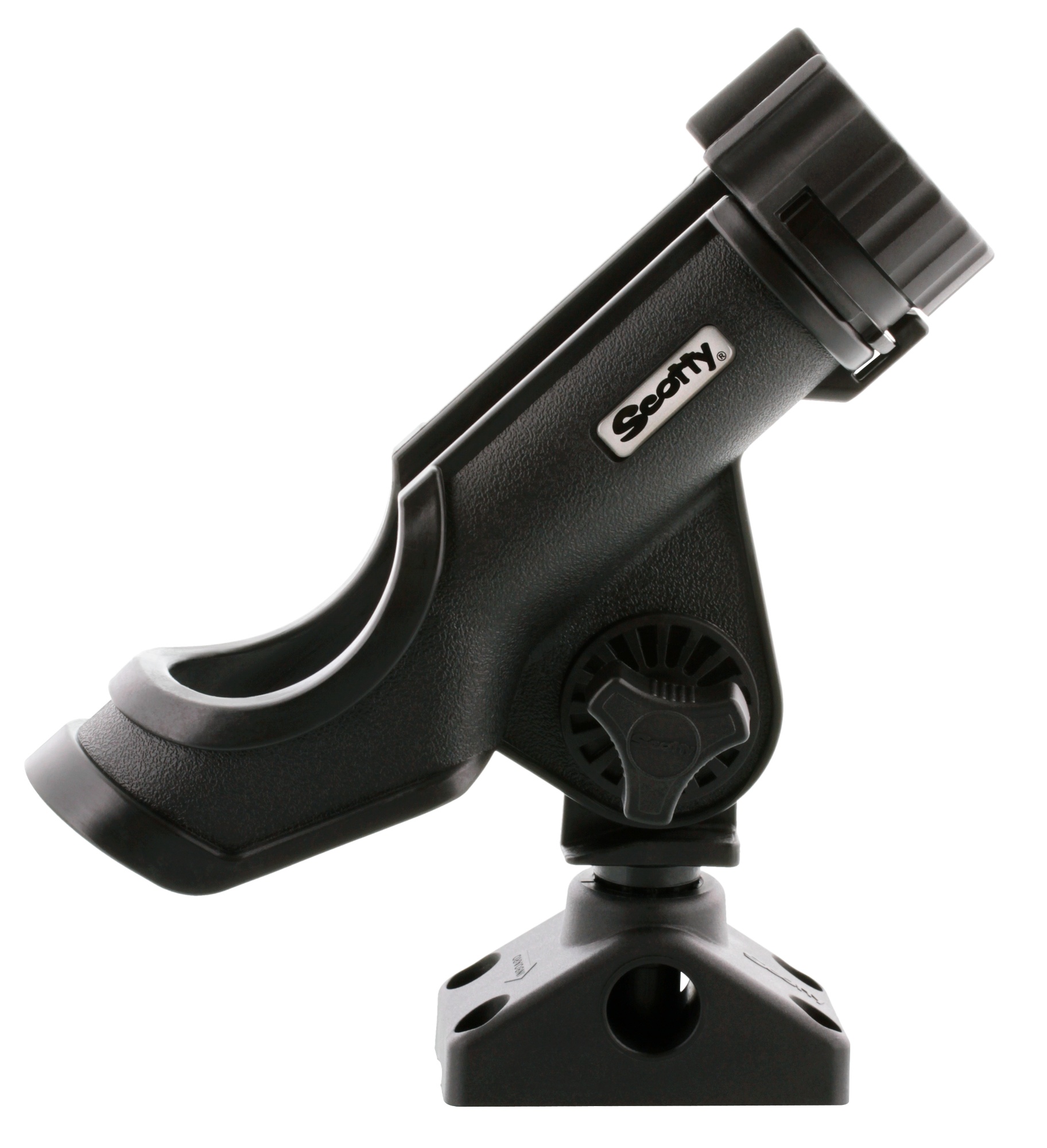 Scotty 230BK Powerlock. Scotty’s mest populära spöhållare tillverkad av fiberförstärkt nylon ger många monteringsalternativ och förstklassig kvalitet. Powerlock kan tack vare den öppna designen användas tillsammans med i stort sett vilket spö som helst och har en främre låsring som även fungerar som transportsäkring. Powerlock kan roteras 360° och vinklas till önskad position. Levereras med Scotty 241 monteringsplatta för topp eller sidomontage, samt med Scotty 242 adapter för montage på rund reling.