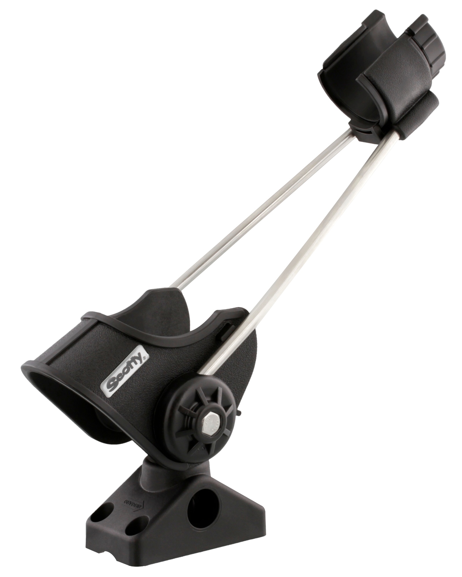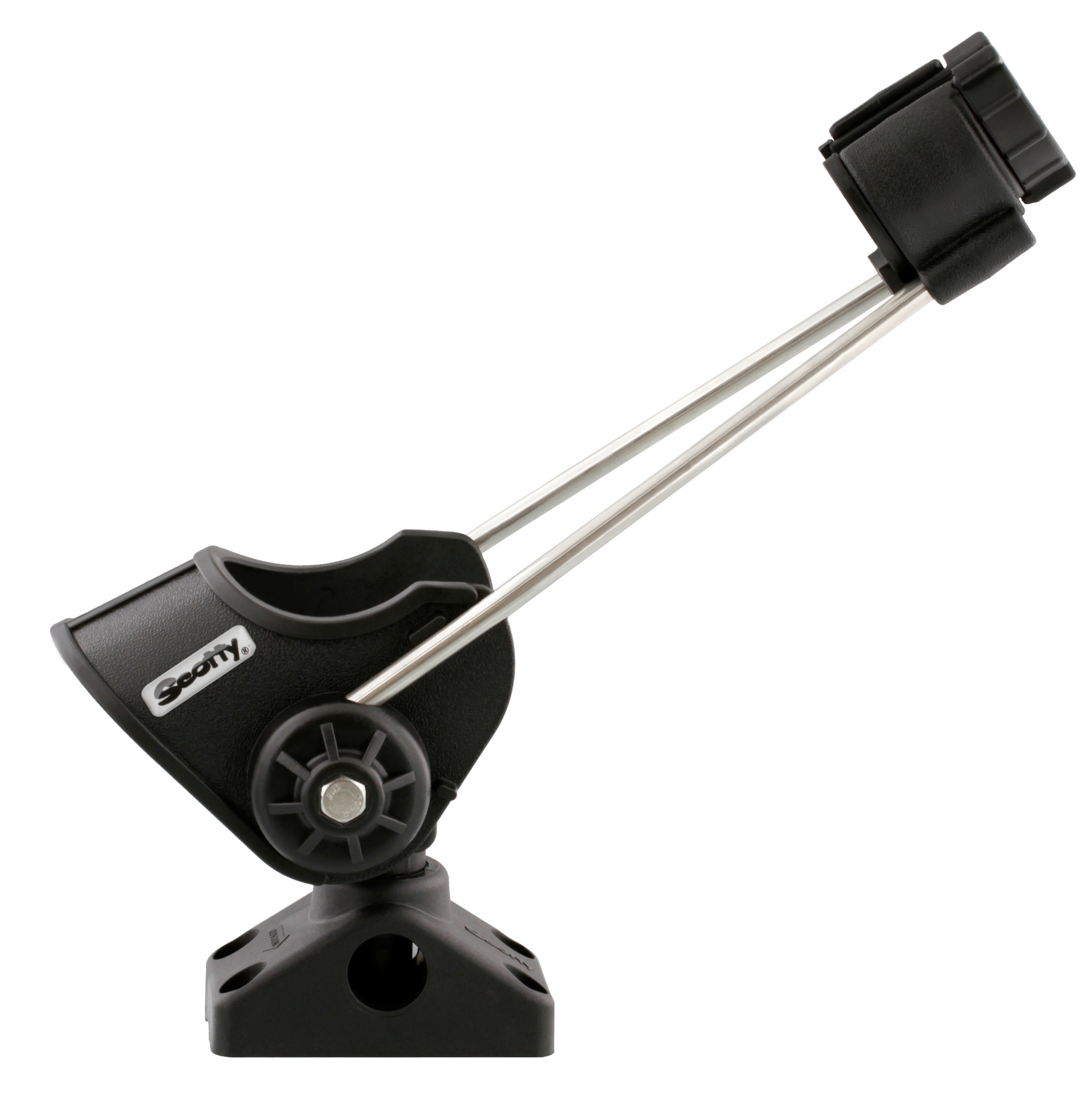 Scotty 240 Striker. Scottty-originalet är fortfarande en av världens mest sålda och uppskattade spöhållare tillverkad i kombination av rostfritt stål och fiberförstärkt nylon. Striker fungerar tillsammans med i stort sett vilket spö som helst och har en främre låsring som även fungerar som transportsäkring. Striker kan roteras 360°och vinklas till önskad position. Levereras med Scotty 241 monteringsplatta för topp eller sidomontage, samt med Scotty 242 adapter för montage på rund reling.