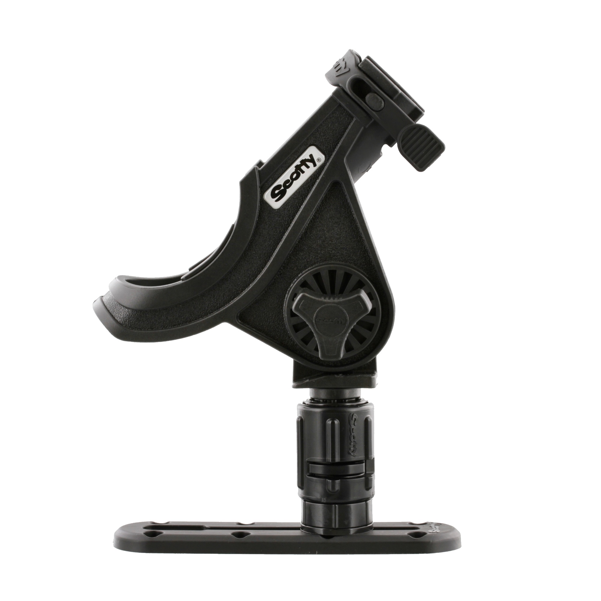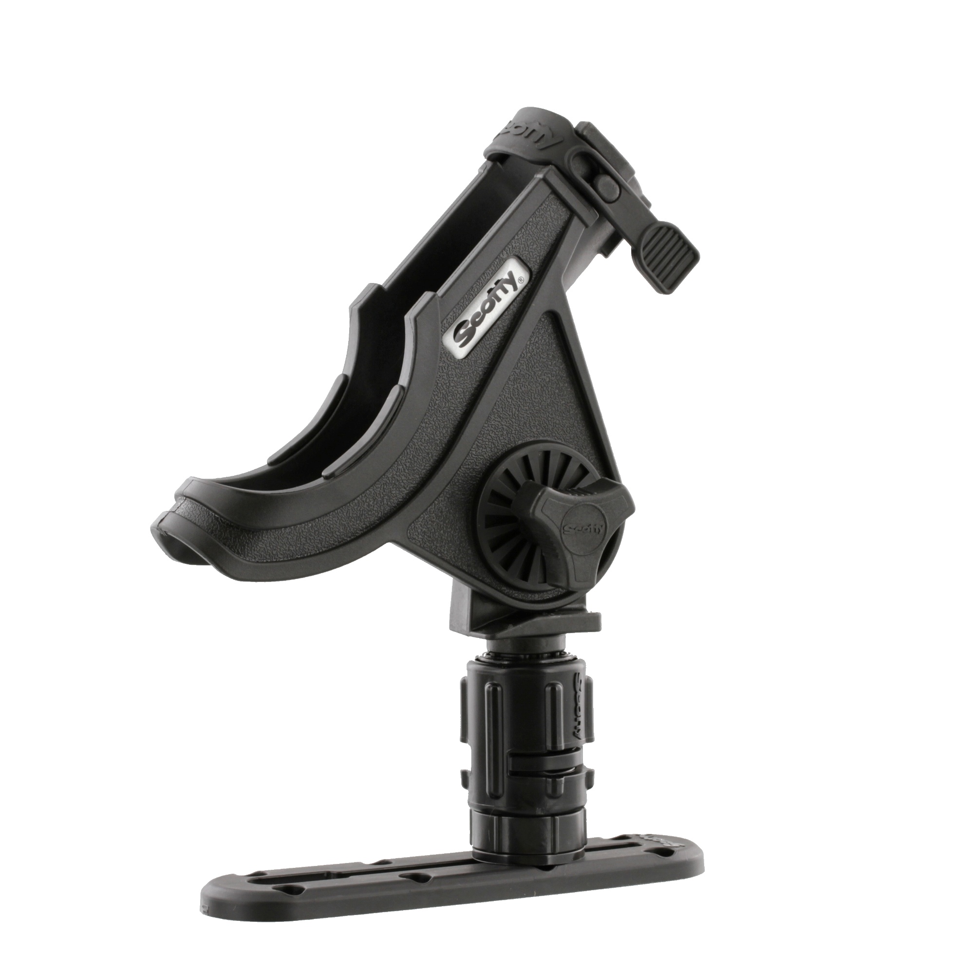 Scotty 282BK Baitcaster w Gear Head. Spöhållare som håller en multiutrustning säkert på plats i den fodrade vaggan som också har öppning för spöts trigger. Med hjälp av den mjuka spännremmen sitter utrustningen säkert även under transport. Urtag framtill gör att man kan använda spöhållaren även till spinnutrustning. Tillverkad av fiberförstärk nylon och levereras med Scotty 438 Gear Head Track Adaper och Scotty 440BK-4 Low Profile Track gör att spöhållaren smidigt kan monteras på kajak eller kanot.