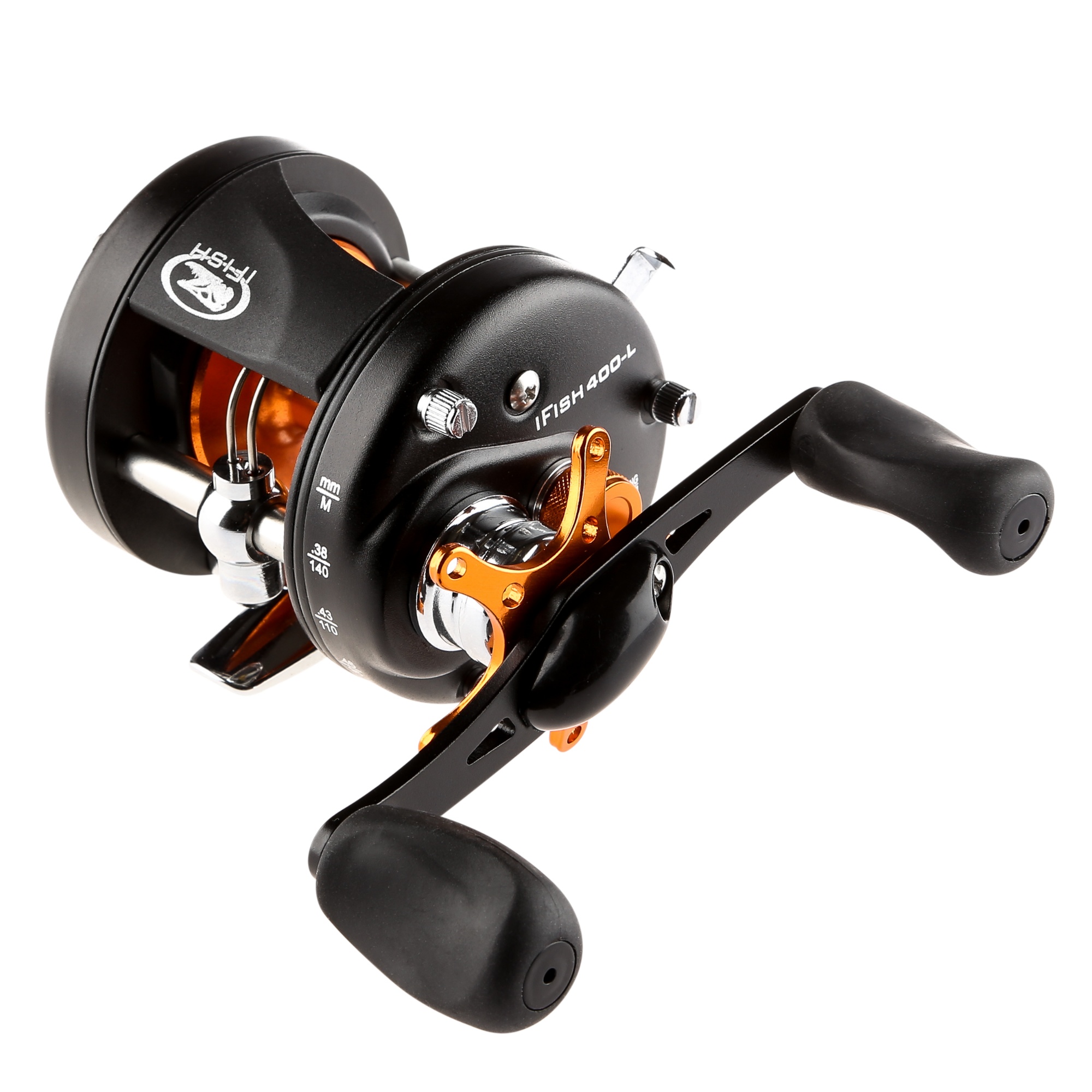 IFISH 400-L. Multiplikatorrulle som passar året om. Robust aluminiumkonstruktion med 3 kullager och revspridare. Perfekt bl.a. för ismetet. Vänstervevad. Vikt 285g, Utväxling 5.2:1. Linkapacitet 140m 0,38mm