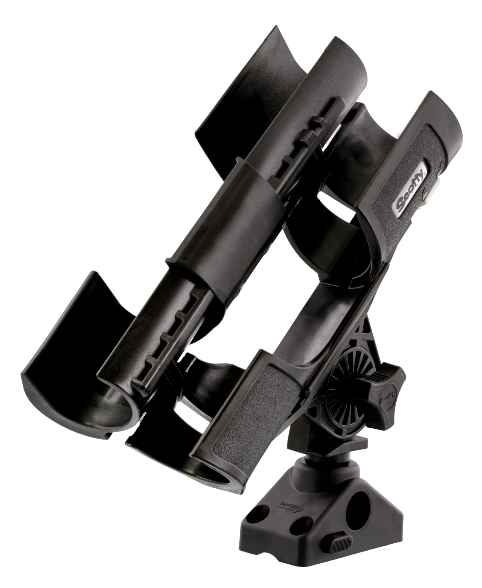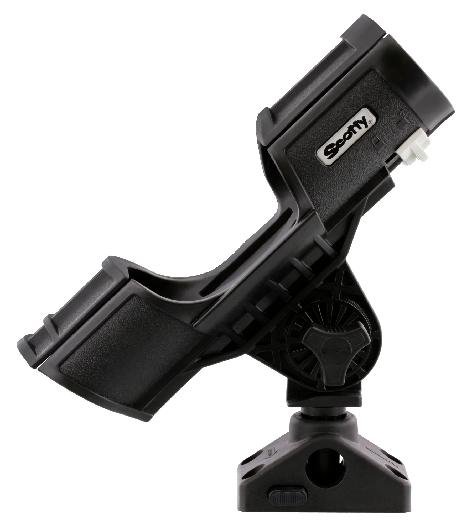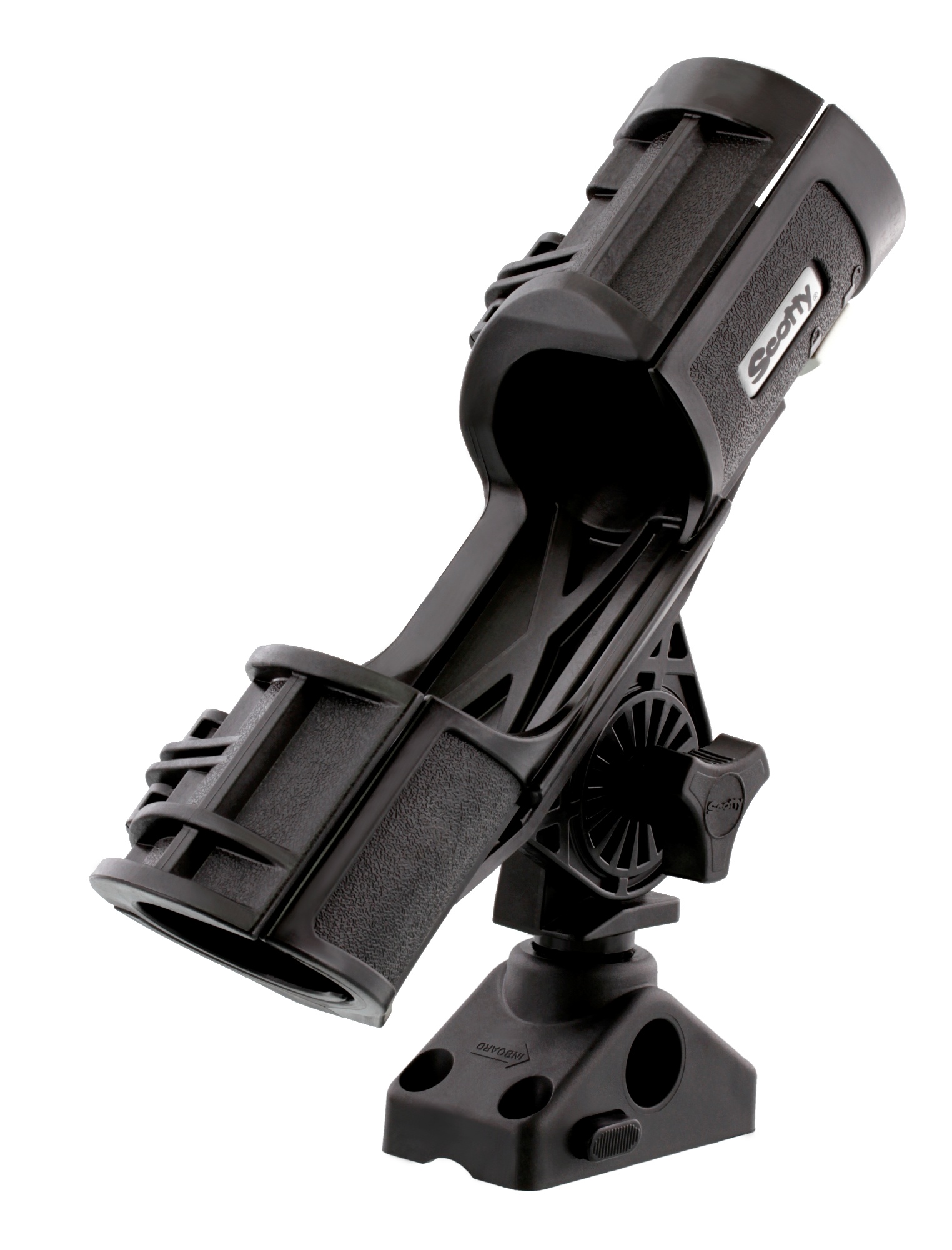 Scotty 400 Orca. Marknadens snabbaste spöhållare tillverkad av fiberförstärkt nylon som ger styrka och pålitlighet. Öppnas i en rörelse och frigör spöet ögonblickligen utan att förlora tid. Levereras med Scotty 241L låsbart fäste för topp eller sidomontage som gör att spöhållaren både kan vinklas och roteras 360°. Låsning framtill gör att utrustningen sitter säkert under transport.