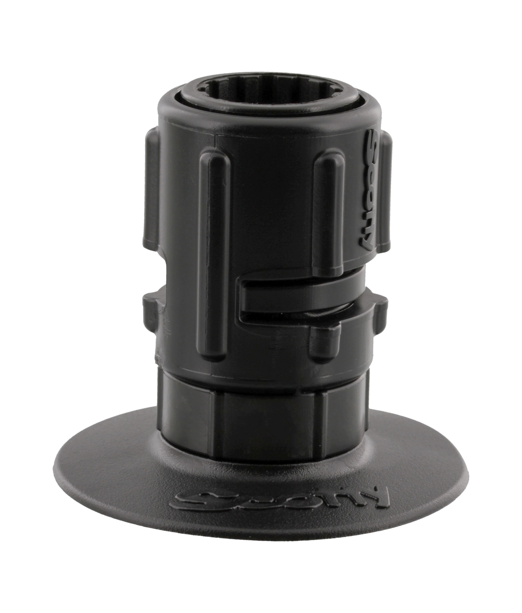 Scotty 448 Stick-On Gear Head. Självhäftande fäste med tejp från 3M, som kan appliceras på i stort sett alla hårda ytor på Kajak eller SUP. Levereras med Scotty Gear Head som passar alla Scotty produkter med post mount och kan roteras 360°, och ger oändliga möjligheter för portabla lösningar. Vid limning var noga med att använda av tillverkaren rekommenderat lim.