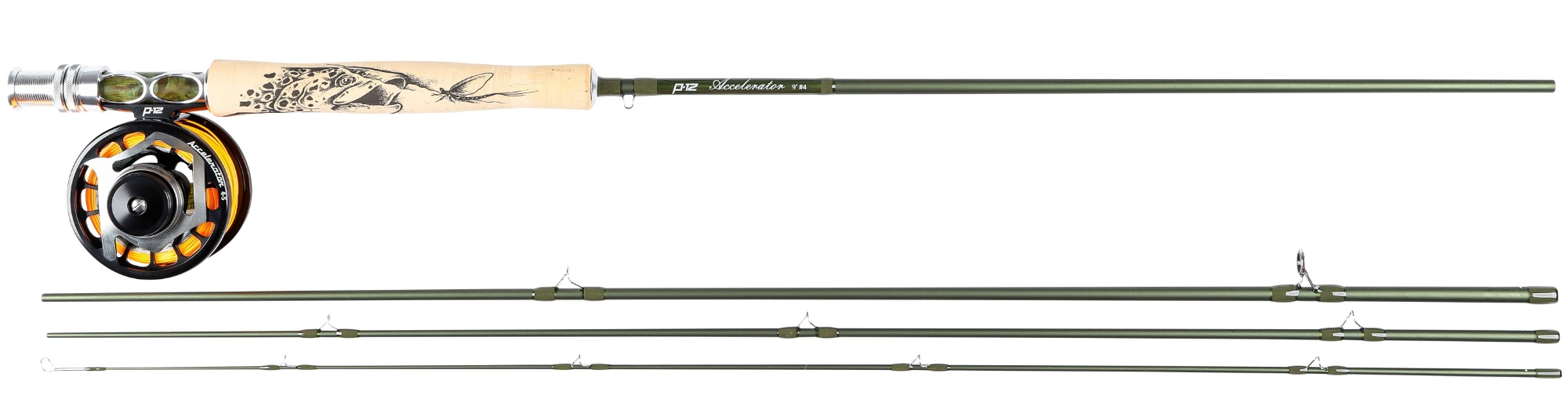 Pool 12 Accelerator 904-4. Flugspö med smäcker klinga tillverkad i 40 ton TB-grafit som ger både kraft och precision. Rullfäste i metall och korkhandtag i AAA kvalitet med läcker öringdesign. Levereras i skyddande cordura tub. 4-delat. 9', 270cm. För linklass 4. Vikt 92g.