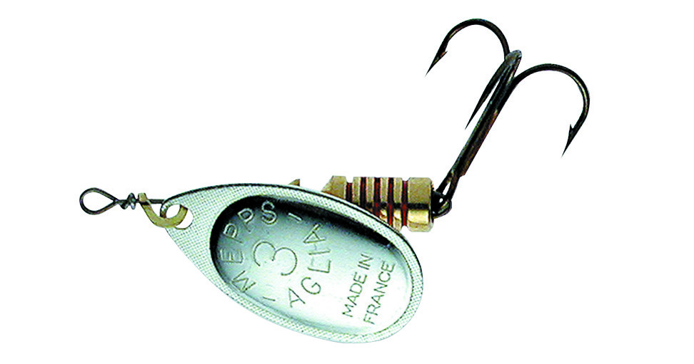Mepps Aglia. Fransktillverkad klassisk spinnare lämplig för fiske efter abborre, öring mm. Vikt 2,5g. Färg Silver.