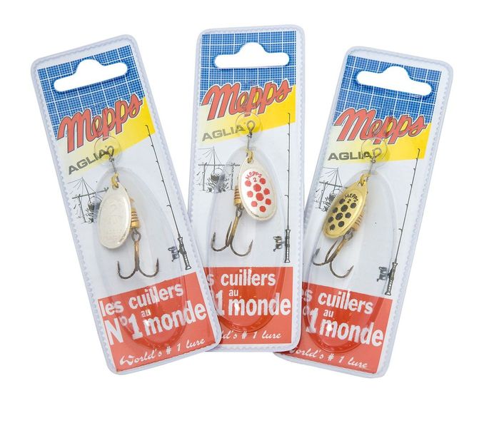 Mepps Aglia 3-pack. 3 utvalda Mepps spinnare, världens med sålda spinnare. Vikt 4,5g. Sorterade färger.