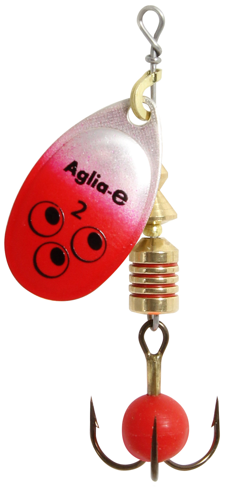 Meppa Aglia-e. Fransktillverkad spinnare med UV detaljer, lämplig för fiske efter abborre, öring mm. Vikt 4,5g. Färg Silver-Röd.