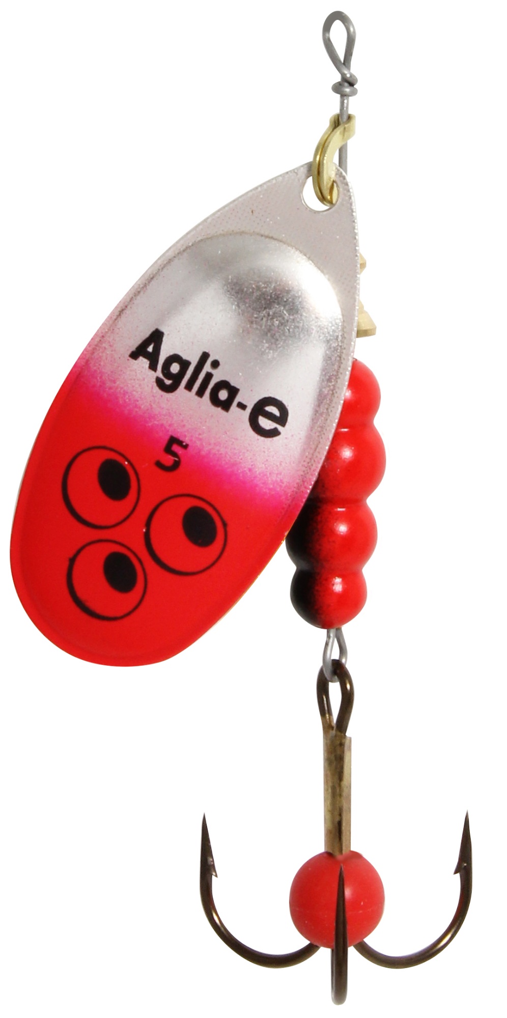 Meppa Aglia-e. Fransktillverkad spinnare med UV detaljer, lämplig för fiske efter abborre, öring mm. Vikt 13g. Färg Silver-Röd.