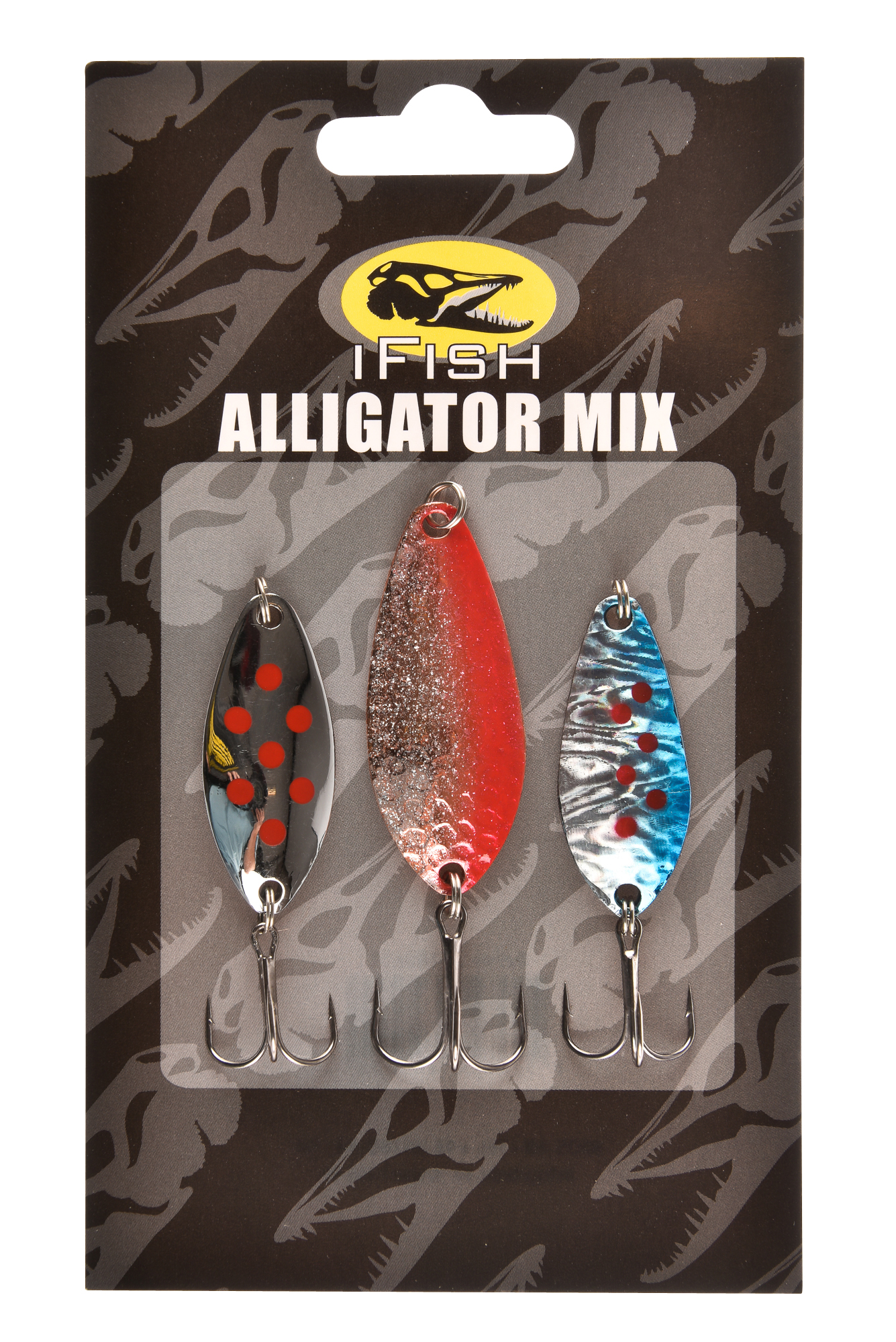 IFISH Perfekt Mix Alligator. Innehåller tre Alligator skeddrag för fiske efter t.ex. öring eller abborre. Vikt 7g, 10g & 12g
