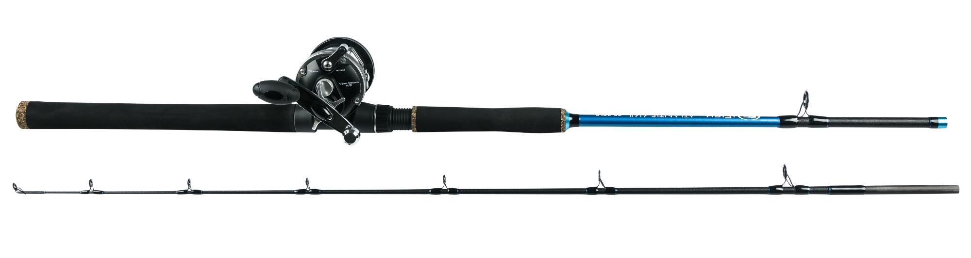 IFISH Atlantis Combo 6' 6" 20-30lb. Fiskeset för havsfiske från båt som klarar tuffa tag. 195cm långt 2-delat grafitspö för beten upp till 400g. Helt nyutvecklad och lätt klinga med robust nedåtlåsande rullfäste. I kombination med kullagrad högervevad havsfiskerulle med maskinskuren aluminiumram och sidostycken i grafit, kraftiga mässingsdrev, aluminiumspole, revspridare, kraftig broms mm. Linkapacitet 275m 0,45mm. Utväxling 4.2:1. Utrustningen är klassad 20-30lb.