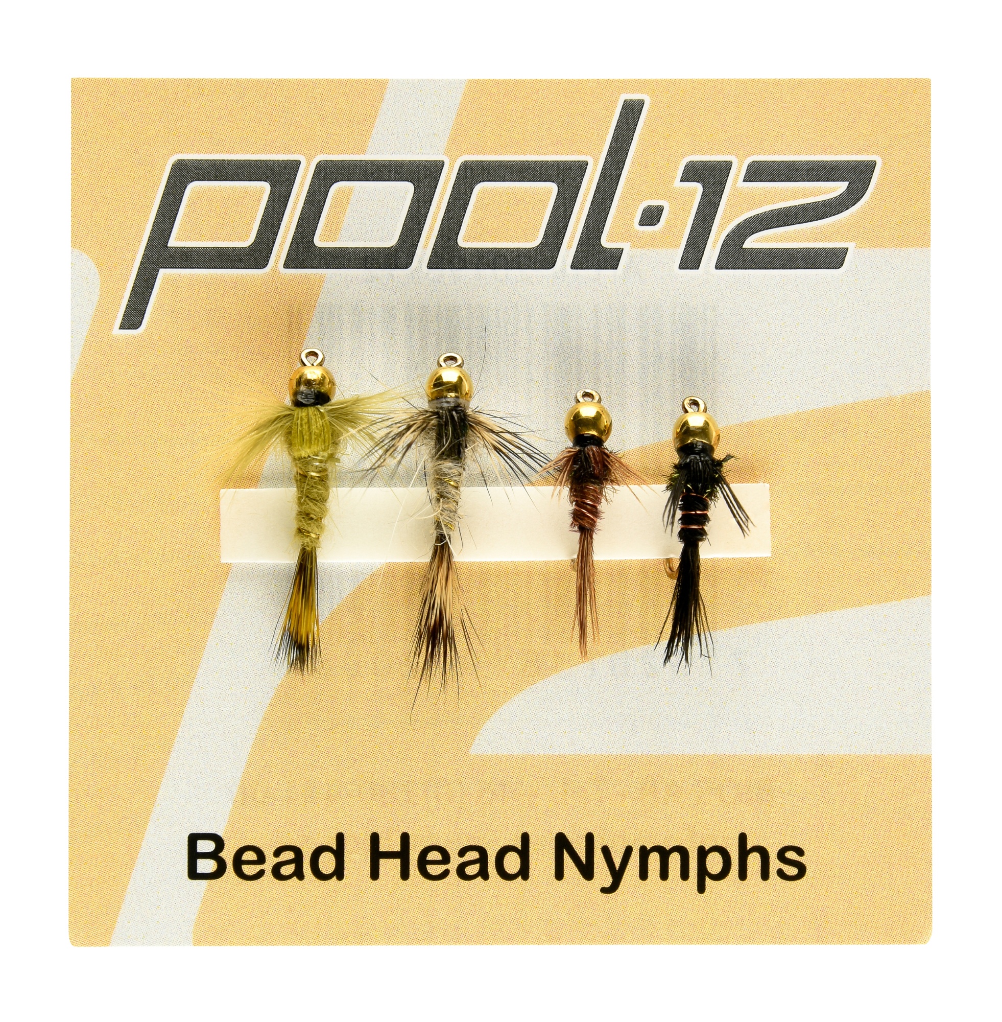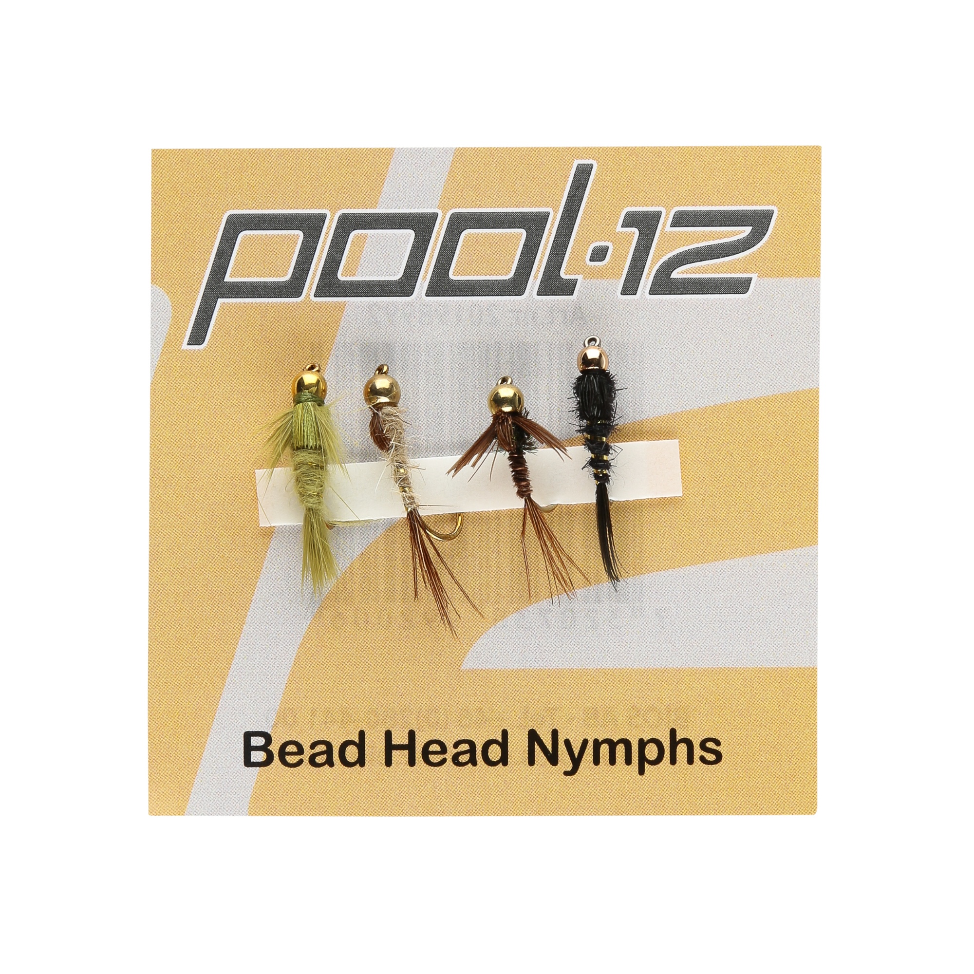 Pool 12 Bead Head Nymphs 4-pack. Fyra varianter av förtyngda nymfer. Bra flugor när fisken äter under ytan.
