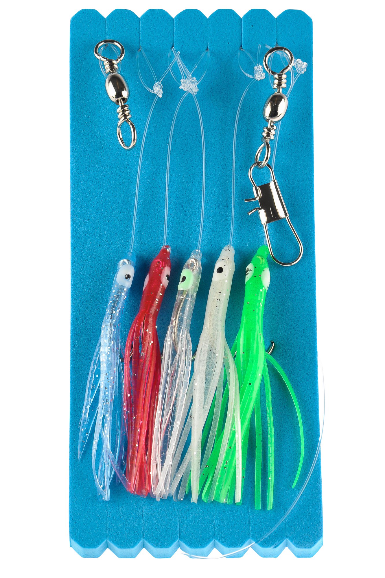 IFISH Bläckfisk 1/0. Häckla med fem upphängare som levereras på praktisk foam där häcklan kan förvaras för att undvika trassel i redskapslådan. Krokstorlek 1/0. Lämplig för fiske efter Makrill mm.