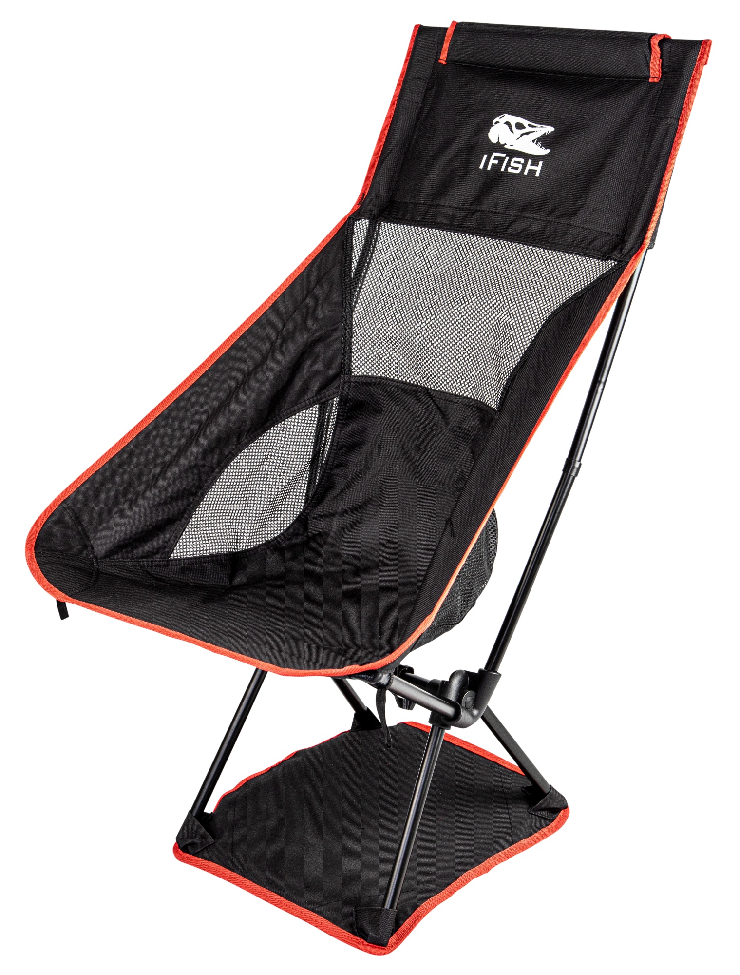IFISH Campingstol Tronen. Bekväm hopfällbar stol. Tillverkad i 600D polyester med pulverlackad, stabil stålram. Levereras med bottenplatta som fördelar belastningen jämt för att förhindra att stolsbenen sjunker ner i marken. Bra tillbehör när man behöver placera stolen på mjukt eller ojämnt underlag. Levereras i praktisk förvaringspåse. Max belastning 120kg. Mått: 58 x 89 x 36cm, Hopfälld 46 x 14,5 x 12cm. Vikt 1,79kg.