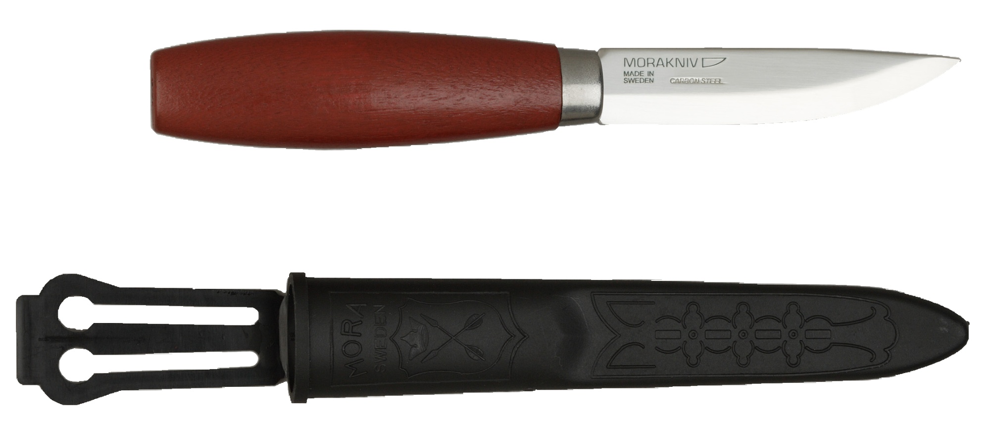 Morakniv Classic Nr 2 - Här är en äkta klassisk hantverks- och friluftskniv som varit en del av den svenska hantverkstraditionen i över ett sekel. Den är dessutom lätt att återskärpa vilket gör att du kan använda den om och om igen. Med ett spolformat rödbetsat björkskaft och ett 2,5 mm tjockt blad av kolstål är ingen uppgift omöjlig. Knivslidan av polymer har en polerad yta och är klädd med Dalavapnet. Den kompletteras med en bältesstropp av svenskt vegetabiliskt garvat läder, designad att stå emot tidens tand i generationer framöver. Kolstål rostar, så torka av och olja in bladet efter användning. Bladtjocklek: 2,5mm Bladlängd: 105mm Totallängd: 250mm Vikt: 95g.