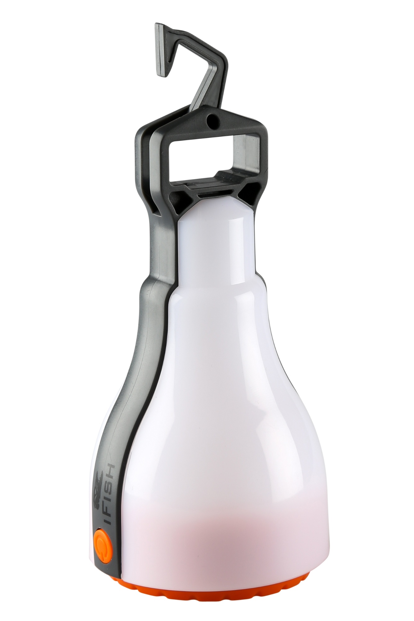 IFISH COB LED 4-i-1 Lanterna. Smart konstruktion med flera funktioner. COB LED lyser starkare än vanliga led lampor, och ger ett större upplyst område, vilket gör den utmärkt som campinglampa. COB LED ger ett varmt vitt sken som även ger bättre synlighet i regn eller dimma. 4 funktioner i en och samma lampa; LED-lampa, Ficklampa, Hängande lanterna, Hands-Free lampa med magnetfäste. Tekniska Specifikationer: Varm Vit COB LED Ljusstyrka : 150 lumen. Batterier: 2 AAA (Ingår) Drifttid: 5 timmar (beror på förhållanden som temperatur etc.)