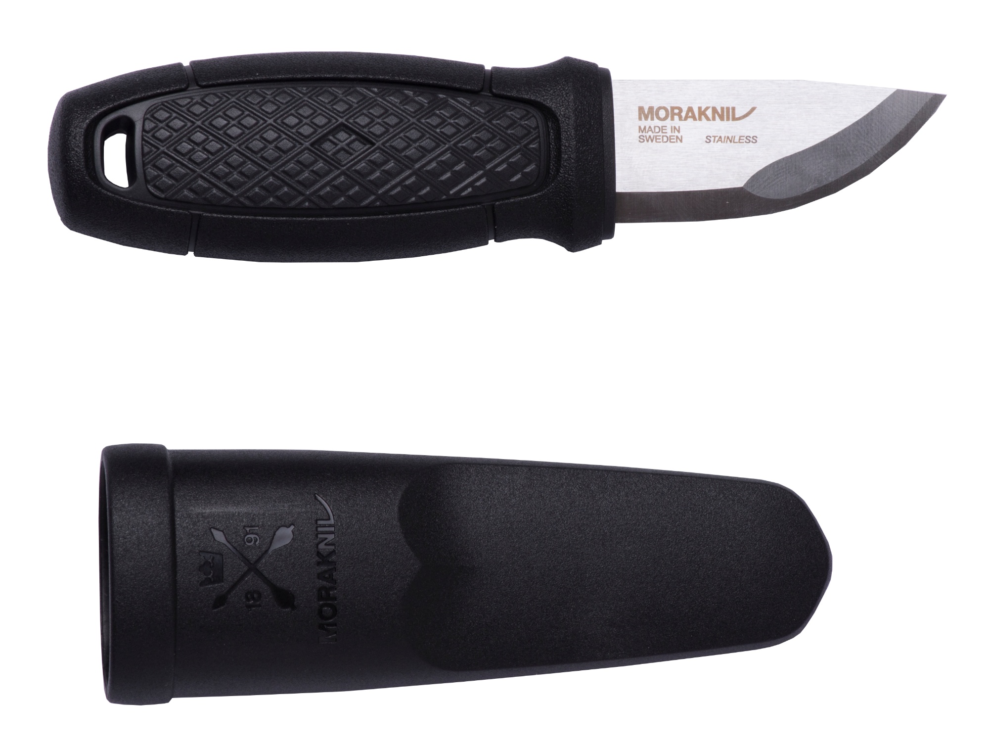 Morakniv Eldris Svart - Här är en friluftskniv som är smidig att förvara i fickan eller ryggsäcken på ditt nästa äventyr. Bladet håller skärpan länge och är dessutom kompatibelt med tändstål. Det ergonomiska spolformade skaftet av polymer har ett mjukt friktionsgrepp, fingerskydd och ett 2,0 mm tjockt profilslipat blad av återvunnet svenskt rostfritt stål ger både styrka och stabilitet i varje skär. Knivslidan av polymer är symmetrisk vilket innebär att den passar både höger- och vänsterhänta. Kan kompletteras med Morakniv Bältes-loop till Eldris. Bladtjocklek: 2,0mm Bladlängd: 59mm Totallängd: 153mm Vikt: 80g.