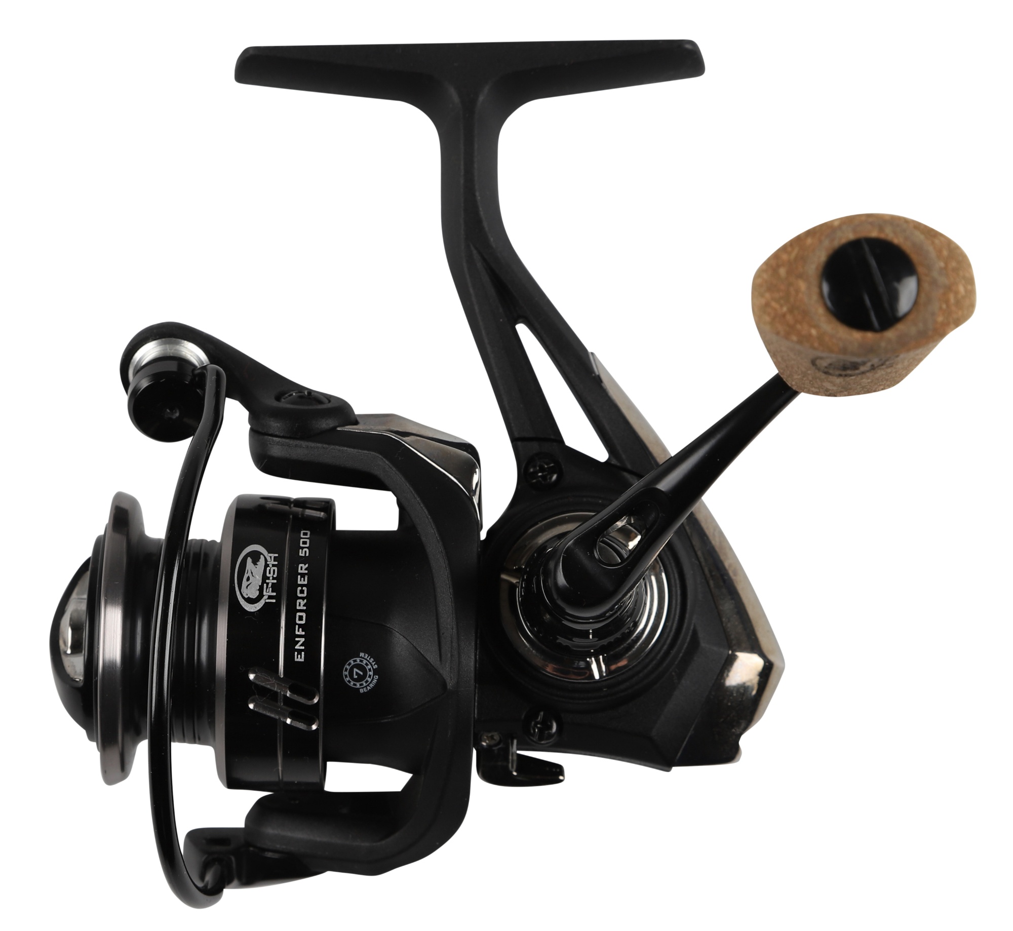 IFISH Enforcer 500. Avancerad ultralätt haspelrulle med aluminiumspole, 7 rostfria kullager och snabbstopp (6+1). Levereras med påspolad nylonlina. Utväxling 5.2:1. Vikt 155g