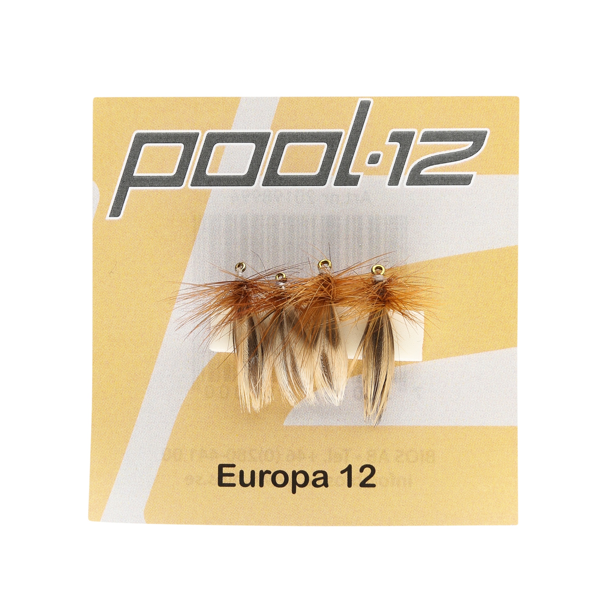 Pool 12 Europa 12 4-pack. Fyra varianter av Europa 12. Bra flugor när fisken äter nattsländor.