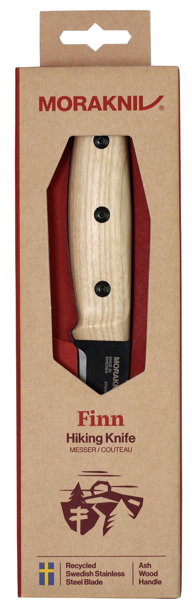 Morakniv Finn Black Blade. En handgjord, stark liten friluftskniv med fulltånge som är smidig att förvara i byxfickan eller ryggsäcken på din nästa hajk. Med ett ergonomiskt unikt skaft av ljust askträ från europeiska FSC® certifierade skogar och ett svart knivblad av återvunnet svenskt rostfritt stål är kniven alltid redo att prestera när det gäller. Oavsett om det är till fots på vandringen eller vid lägerelden är Finn alltid nära till hands. Det ergonomiska skaftet av noggrant utvalt askträ har ett fingerskydd och ett 2,0 mm tjockt svart knivblad av återvunnet svenskt rostfritt stål, som ger både styrka och stabilitet i varje skär. Den svarta PC-beläggningen skapar en balanserad kontrast mellan det ljusa askträet och stålets skinande egg. Knivslidan av vegetabiliskt garvat läder skyddar den vassa eggen från ytor som kan göra kniven slö. Finn är även kompatibel med tillbehöret Morakniv Dangler 10 with Button så att du kan ha kniven på bältet. Bladtjocklek: 2mm Bladlängd: 87mm Totallängd: 197mm Vikt: 124g.