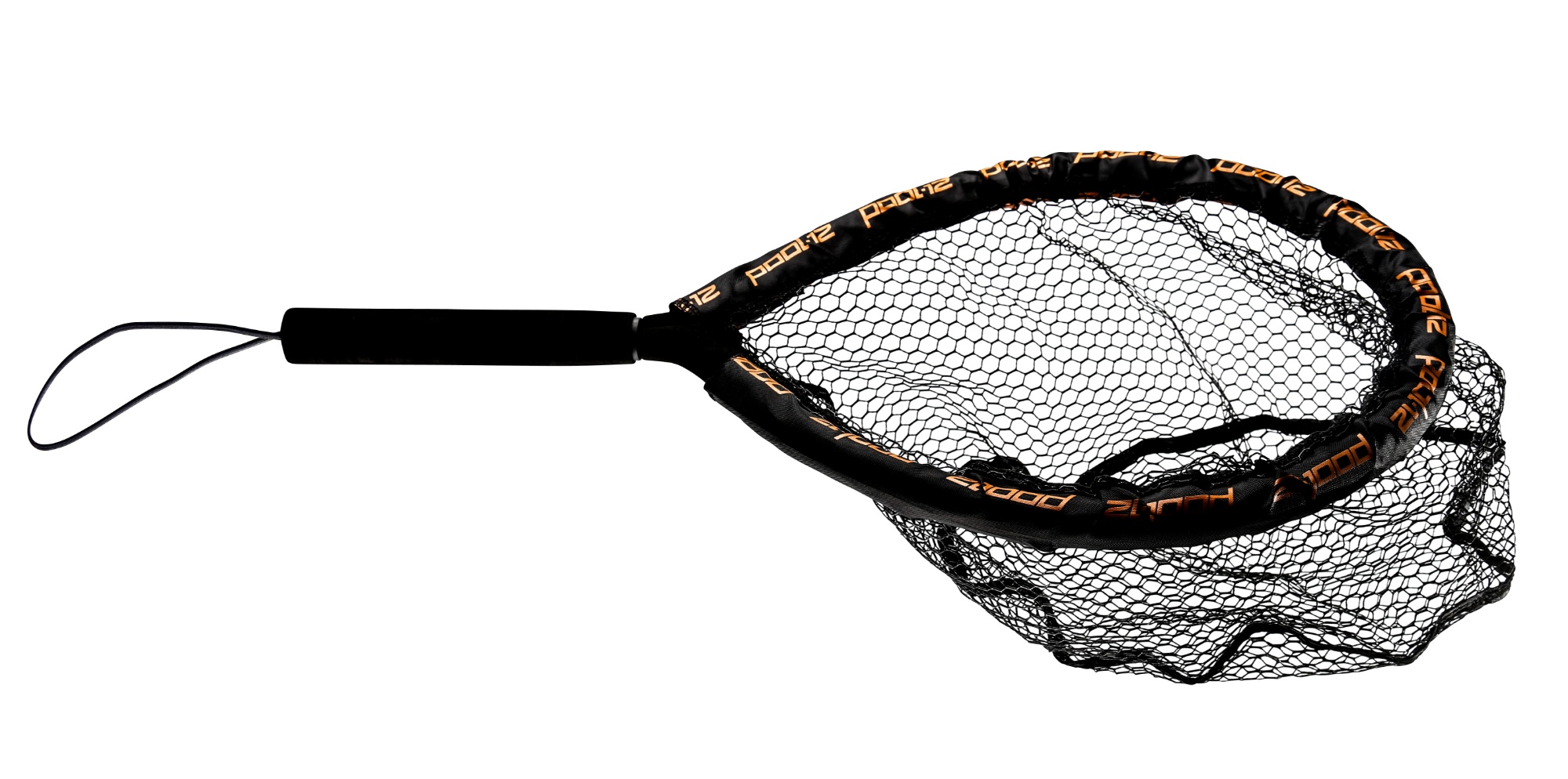 Pool 12 Floating Trout. Flytande öringhåv med skonsamt gummerat nät. Den klädda kanten underlättar vid håvning då fisken enkelt glider över och ner i håven. Längd 60cm varav handtag 18cm. Bredd 32cm.