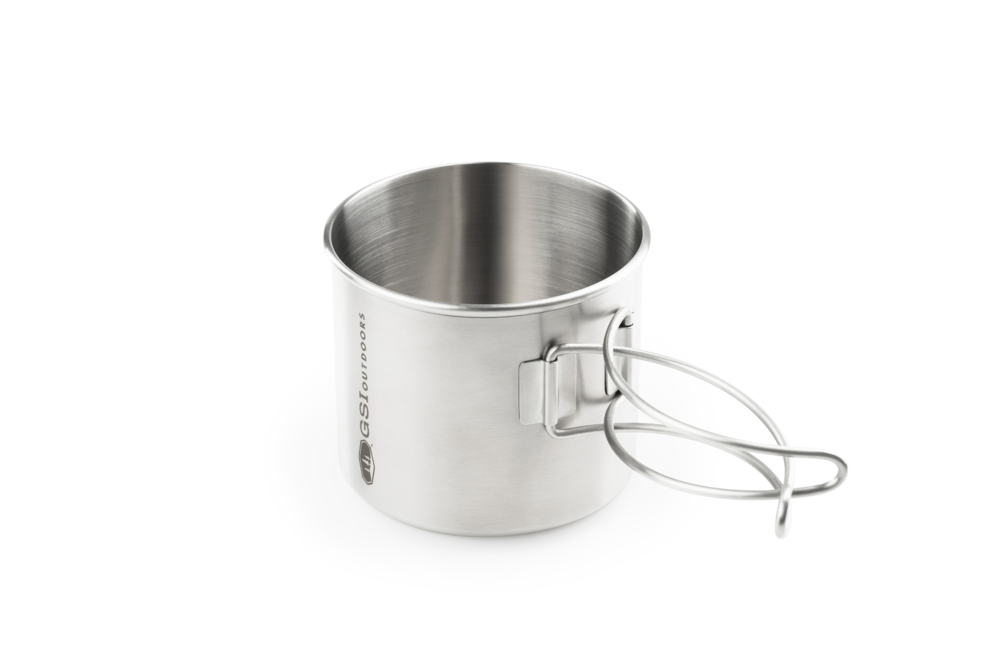 GSI GS Bottle Cup/Pot – Mugg/Kokkärl i stryktåligt rostfritt stål. Designad att rymma de flesta 1L-flaskor för att spara utrymme när du packar din ryggsäck. Långt vikbart handtag. Vikt: 144g, Volym: 591ml