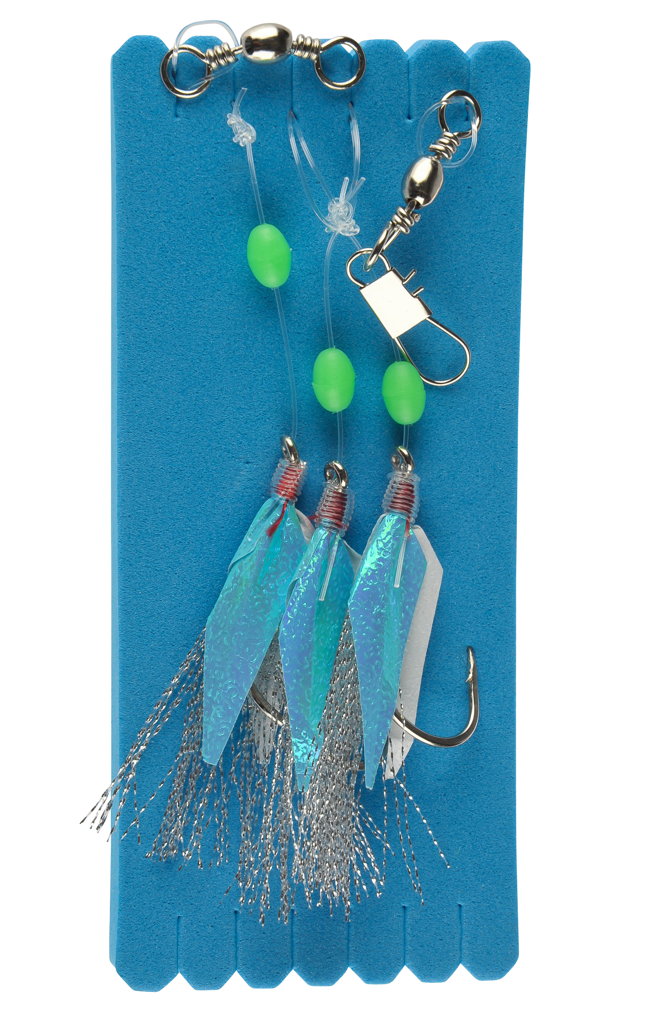 IFISH Glittervinge 6/0 Blå. Häckla med tre upphängare som levereras på praktisk foam där häcklan kan förvaras för att undvika trassel i redskapslådan. Krokstorlek 6/0. Lämplig för fiske efter torsk eller sej mm.