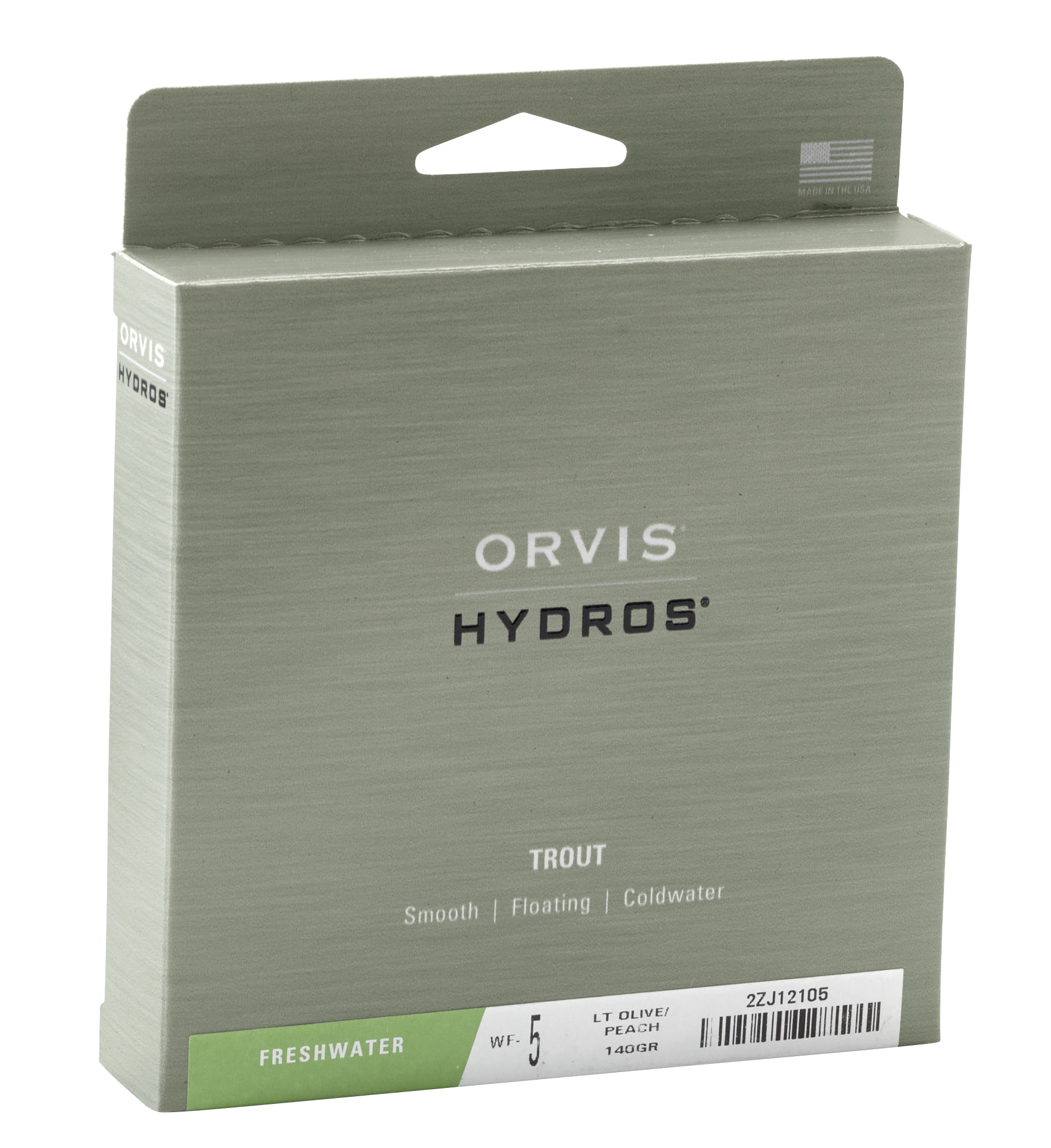 Orvis Hydros Trout WF3F. Hydros Trout är en allroundlina för öringfiske av yppersta kvalitet. Den speciella taperingen är designad för att klara av att kasta både torrflugor, nymfriggar och streamers. Den långa klumpen underlättar vid loopkast och när man mendar. AST Slickness, en patenterad dry-slick-teknologi bibehåller linans egenskaper bättre än traditionella fluglinor. minskar friktion och är motståndskraftig mot smuts, alger och andra främmande partiklar. Dubbla svetsade öglor för enkel anslutning till backing och tafs. Orvis Line ID för snabb och enkel identifiering. Byggd på flätad multifilamentkärna som passar bra i även i lite lägre vattentemperatur. Tvåfärgad med färgbyte 30' (9 meter) från främre spetsen av linan. Totallängd 27m. Klumplängd 13,5m. Färg ljust oliv / persika. Linklass 3.