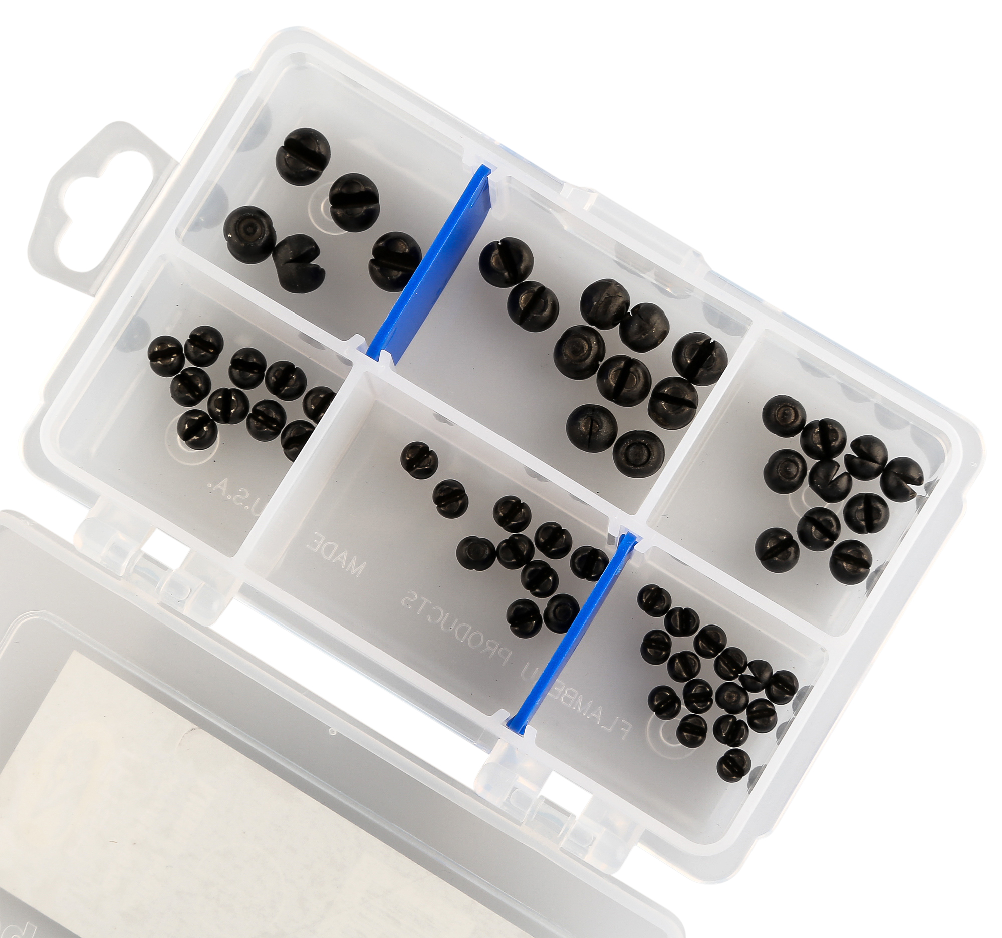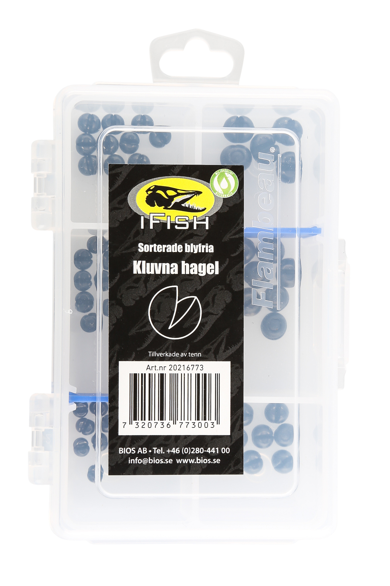 IFISH Kluvna hagel. Sortiment med kluvna hagelsänken i olika storlek i praktisk förvaringsask. Material Tenn. Innehåller 60 sänken mellan 0,3g och 1,6g.
