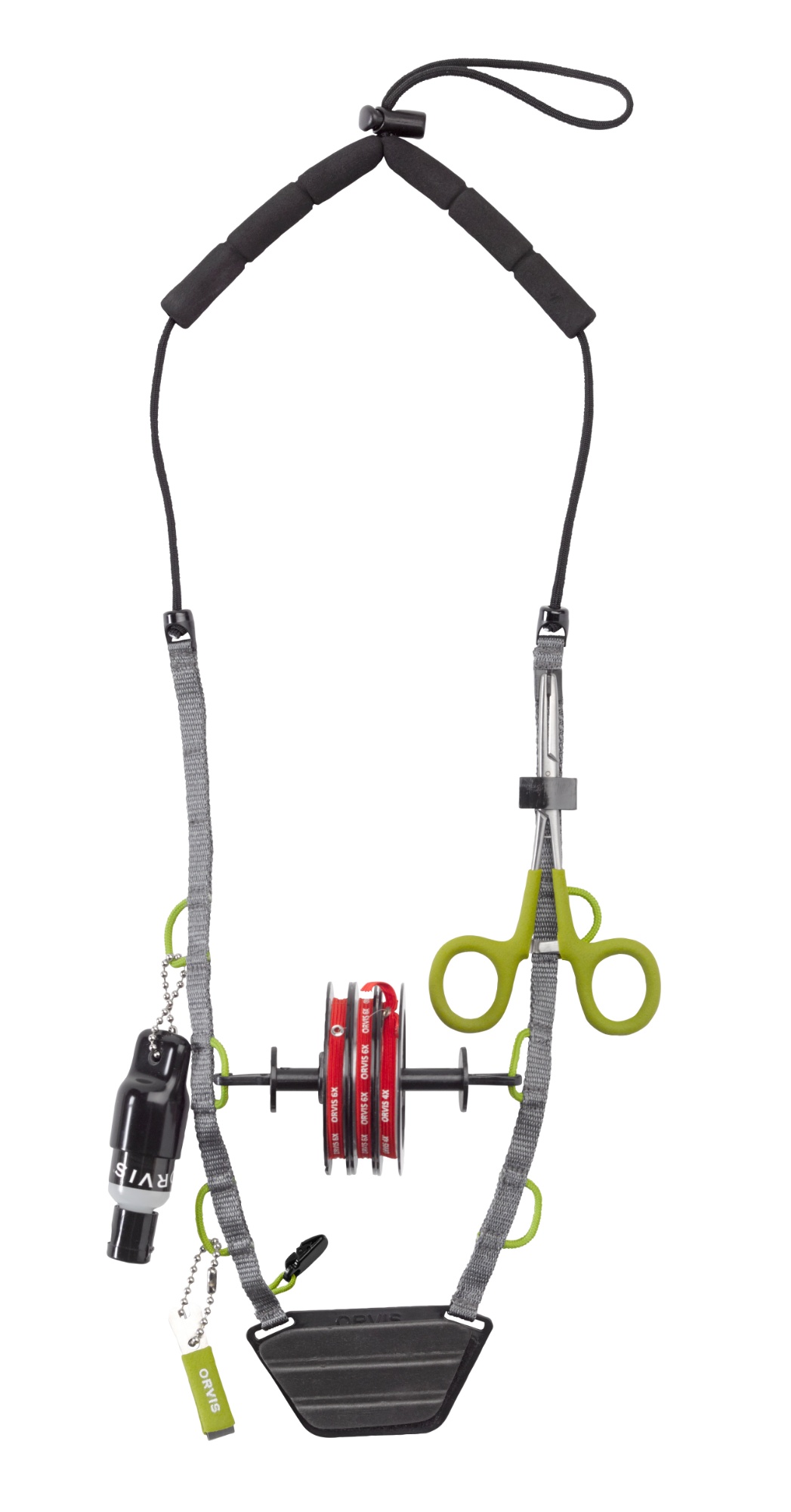 Orvis Lanyard-Loaded. Halsband med fästen för verktyg, flugor och tafsmaterial. Levereras med Cofy Grip Peang, Comfy Grip Nipper, Tippet Bar med 3 spolar Super Strong Tippet, Hy-Gel Floatant med hållare.