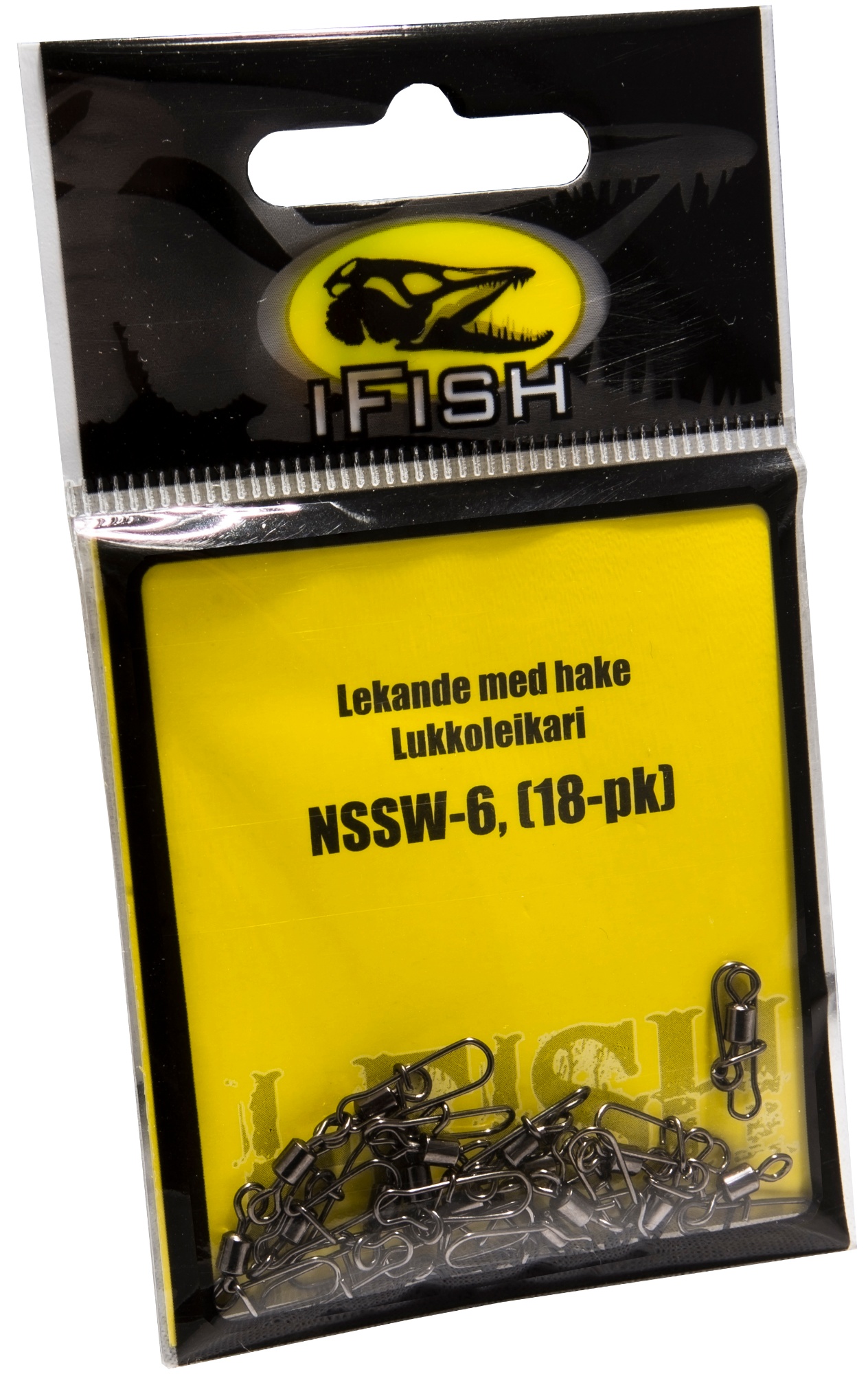 IFISH NSSW-6. Lekande med säkerhetshake som minimerar risken för att låset ska öppnas av misstag. Tillverkat i rostfritt stål. Storlek 6. Längd 25mm. Dragstyrka 18kg. 18 styck per förpackning.