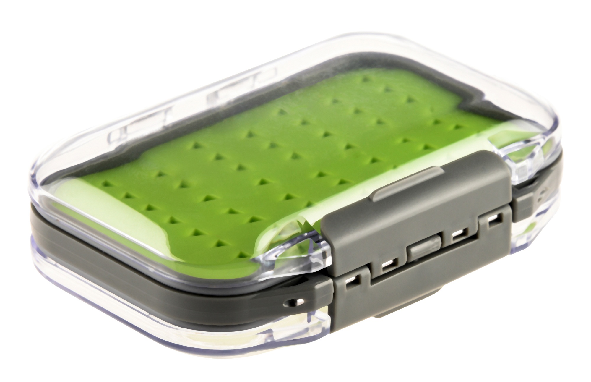 Pool 12 Lime S. Dubbelsidig flugask med skuren silikoninredning skyddar och håller ordning på flugorna. Det genomskinliga locket och den limegröna färgen gör att man har bra översikt över innehållet. Storlek 10,5 x 7,5 x 3,5cm