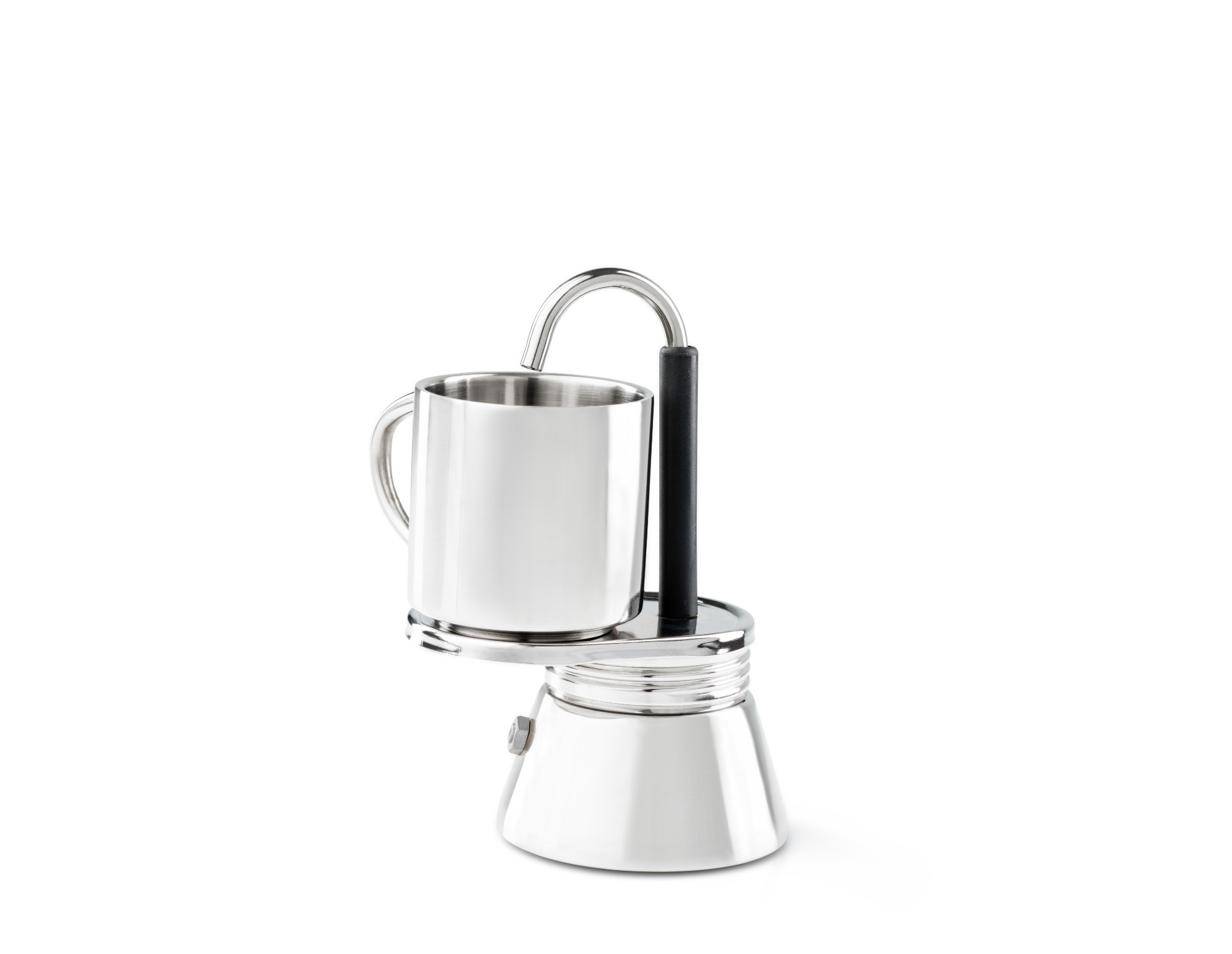 GSI Miniespresso Set 1 Cup - Liten espressobryggare som du sätter direkt på ditt gasolkök eller på en vanlig kokplatta. Extremt enkel att använda, brygger en dubbel espresso på bara 90 sekunder, rostfritt stål för maximal livslängd. Dubbelväggad kopp ingår. Vikt: 312g