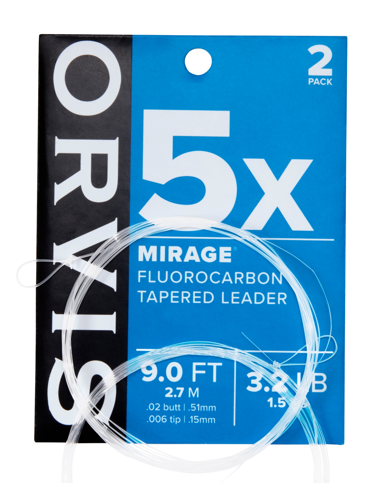 Orvis Mirage™ Leaders. Perfekt för fiske i saltvatten eller för fiske i klara vatten efter skygg fisk. Med ett reflexindex som är nära vattnets eget blir Mirage nästan osynligt i vattnet. Mirage ger även mycket bra motstånd mot nötning, sträcker bra och har hög knutstyrka. Mirage har en hög egenvikt (1,74) och absorberar inte vatten. Varje förpackning innehåller 2 tafsar. Tillverkat av Fluorocarbon . Längd 9’ 2,7m 20lb. 0,38mm. 9,1kg.