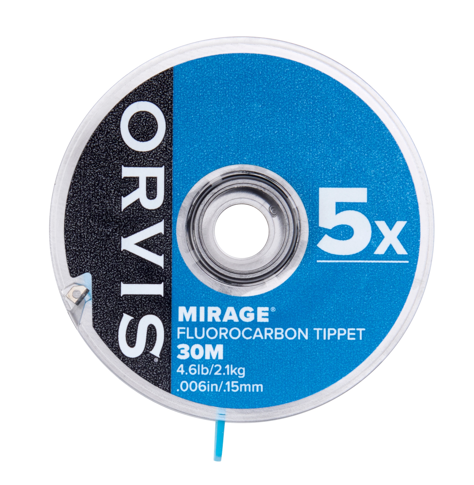 Orvis Mirage™ Tippet. Perfekt för fiske i saltvatten eller för fiske i klara vatten efter skygg fisk. Med ett reflexindex som är nära vattnets eget blir Mirage nästan osynligt i vattnet. Mirage ger även mycket bra motstånd mot nötning, sträcker bra och har hög knutstyrka. Mirage har en hög egenvikt (1,74) och absorberar inte vatten. Spolarna kan kopplas ihop med varandra och har inbyggd linklippare. Tillverkat av Fluorocarbon. Längd 30m. 30Lb. 0,48mm. 13,6kg.