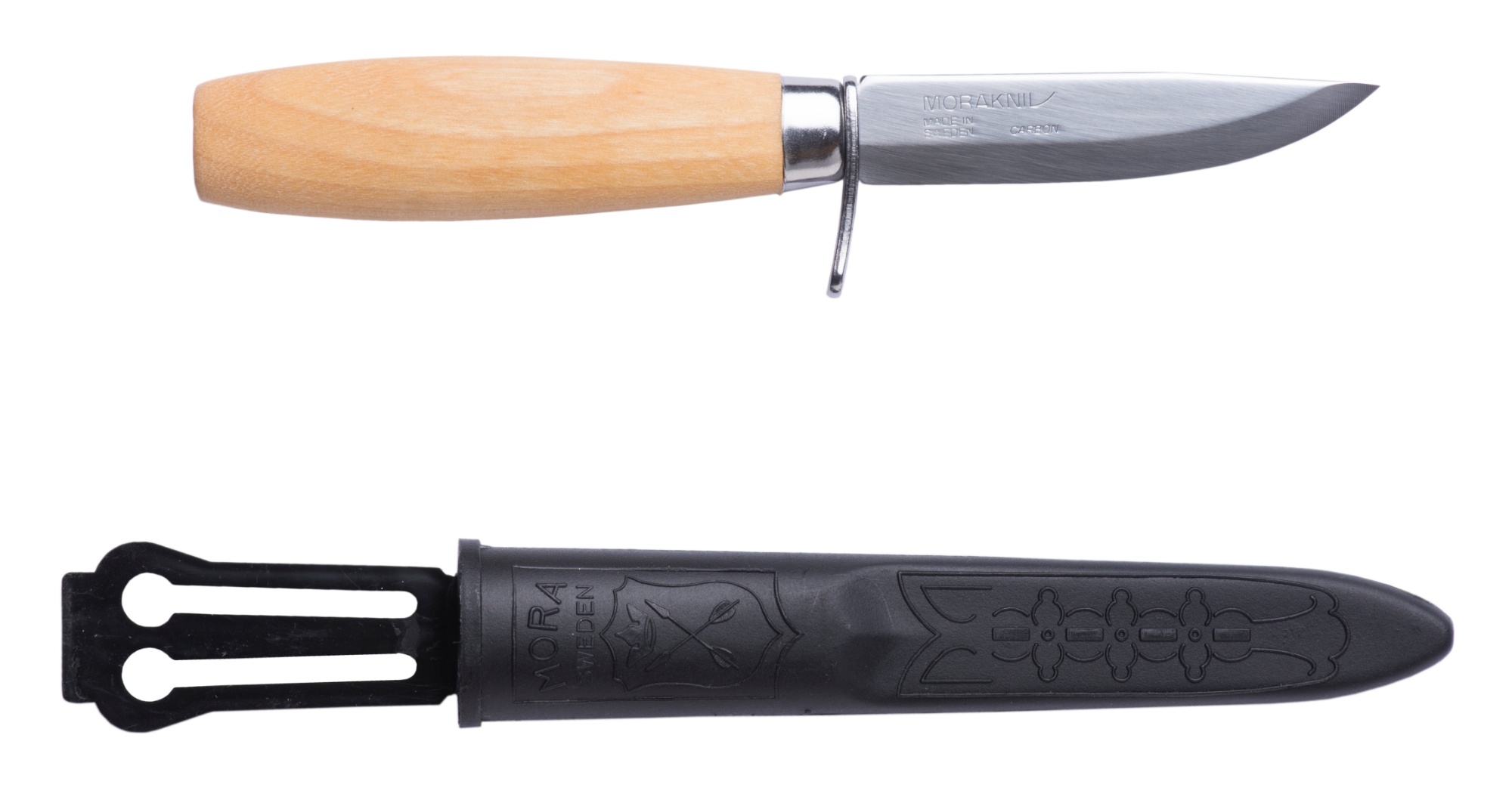 Morakniv 201. En allroundkniv med björkskaft, parerstång och kolstålsblad. Bladtjocklek: 2,5mm Bladlängd: 119mm Totallängd: 215mm Vikt: 195g.