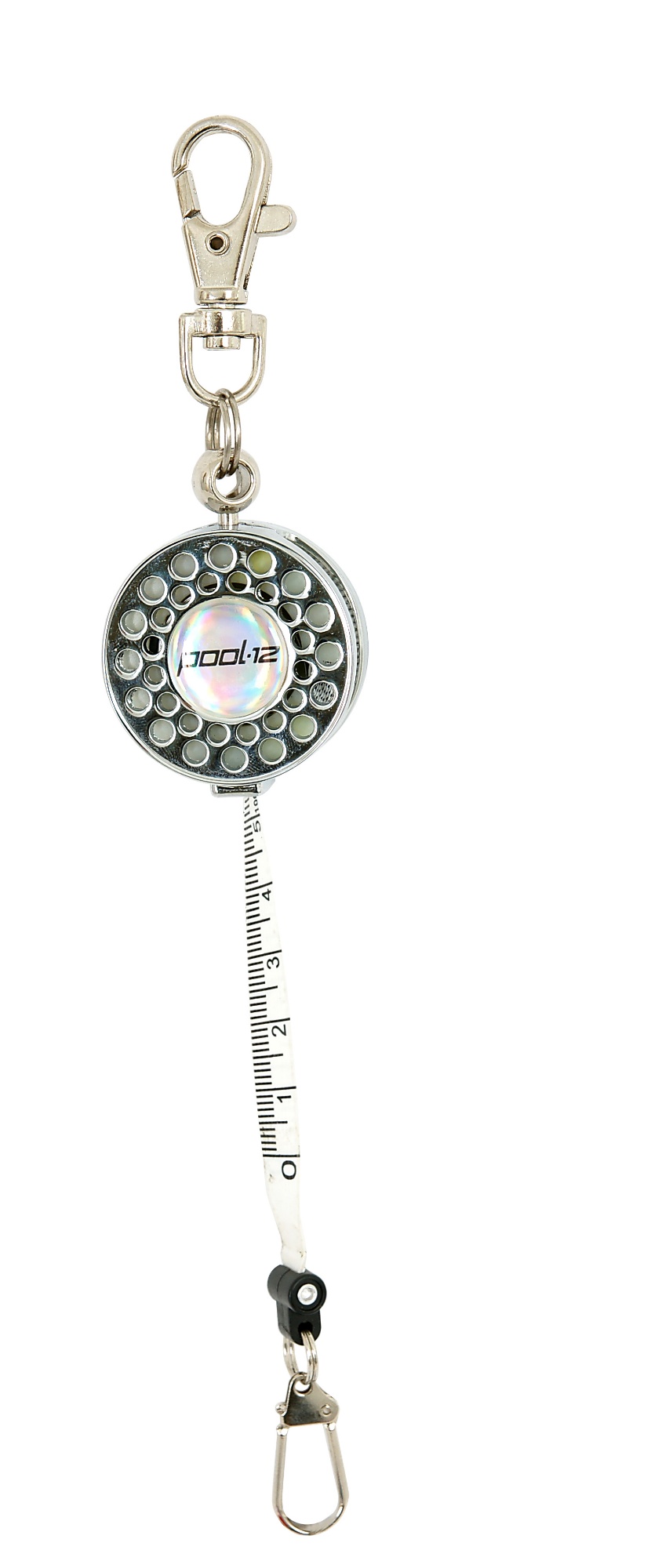 Pool 12 Pin-On-Reel with Measuring Tape. Pin-On-Reel med måttband gör att man snabbt kan mäta fiskens längd innan den sätts tillbaka.