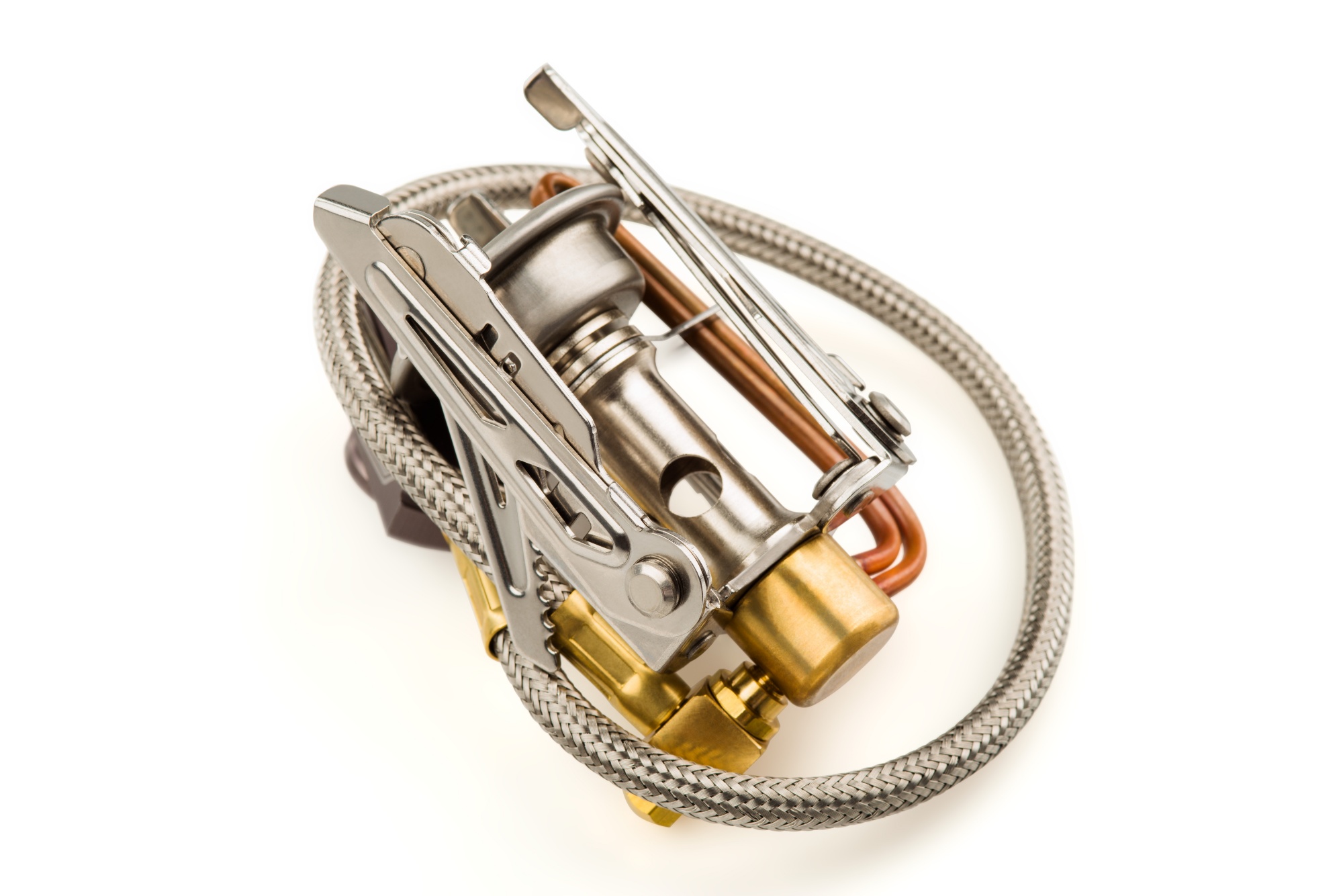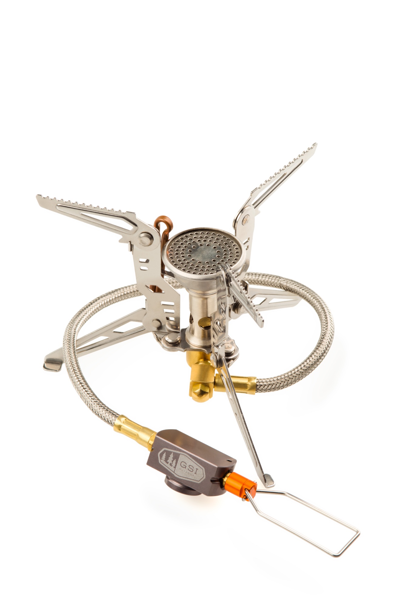GSI Pinnacle 4 Season Stove - Spindelkök med gasbehållaren vid sidan om. Mikrokontrollventil borgar för suverän prestanda året om. Mjuk och smidig bränsleslang med pivot i båda ändarna. Vikt: 164g Mått: 5,1x4,6x8,1cm Stödben för kokkärl: 138mm diameter Effekt: 2870W (9.820BTU/h) Packpåse ingår.