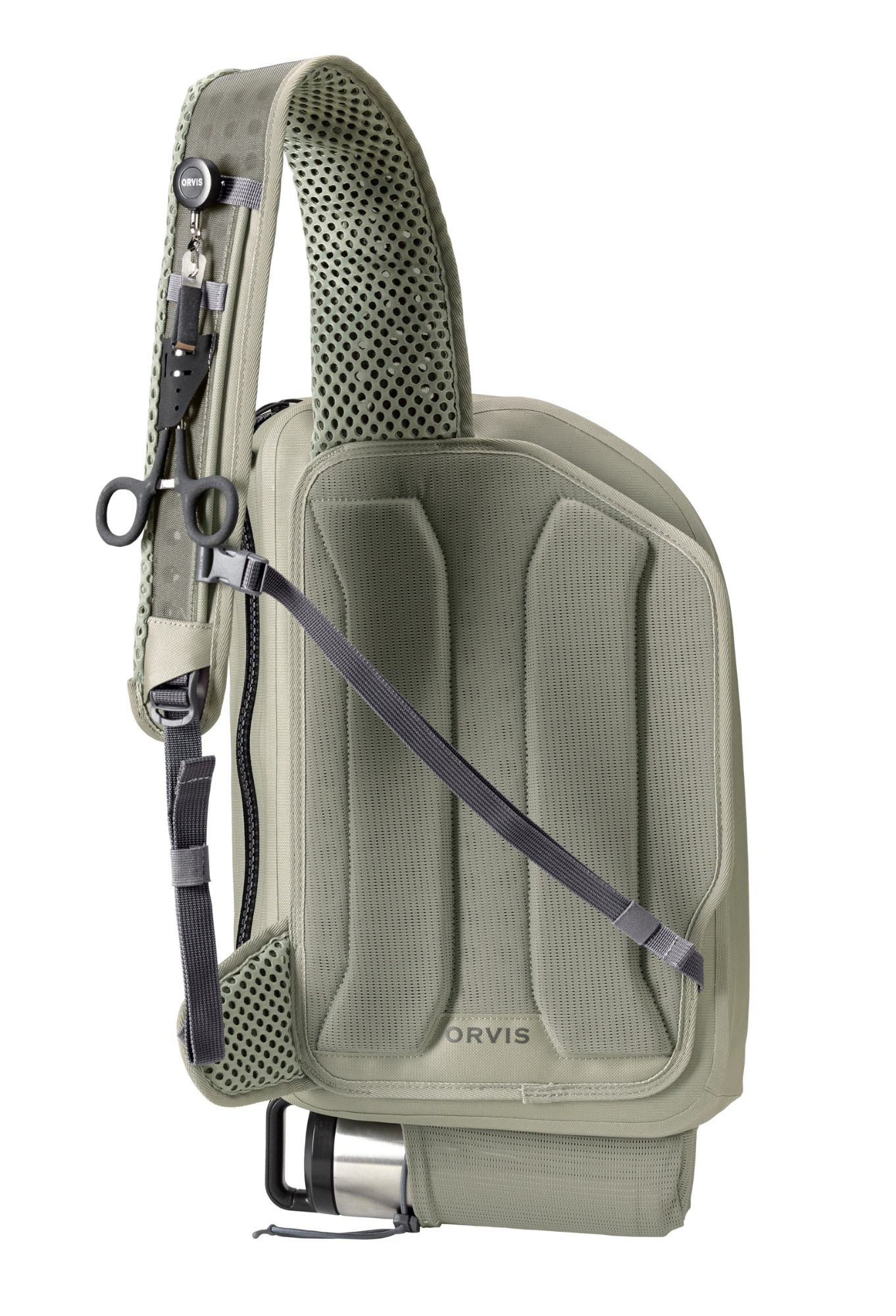 Orvis PRO Waterproof Slingpack. Tillverkad av 840-denier, nötnings- och punkteringsbeständig ballistisk nylon och sedan belagd med 0,1 mm TPU på båda sidor av tyget, placerar sig PRO Waterproof Sling i toppen av sin klass. Med 14L lagringsutrymme erbjuder den tillräckligt med förvaringsutrymme och med extra skydd mot väder och vind. Den intuitiva produktdesignen placerar dina fiskeredskap och tillbehör precis där du förväntar dig att de ska vara. Naturligtvis innehåller paketet den omåttligt populära, patenterade, lättåtkomliga dockningsstationen för Tippet Whippet, nu svetsad på tyget istället för insydd så att det inte finns någon risk för vattenläckage. Lägg också märke till den biffiga, dränkbara, lättmanövrerade, #10 TIZIP® MasterSeal-dragkedjan. Med riktiga tänder som greppar och tätar förhindrar den utblåsning som plågar förpackningar med en smörgåspåseliknande stängning. Utrustningen förblir torr och lättåtkomlig tack vare en generös öppning med en chartreusefärgad interiör. Vi har också gjort om axelremmen och bakpanelen med perforerad 10 mm skumvaddering, vilket minskar vikt och bulk samtidigt som det möjliggör bättre luftcirkulation. Gör en djupdykning i ytterligare funktioner och du hittar en integrerad håvficka på baksidan och en yttre D-ring, en andra vattentät tillbehörsficka med YKK AquaGuard®-dragkedja, ficka för vattenflaska med koppel och invändiga hängfickor för att hålla utrustningen organiserad. Axelremmarna ger dig till och med dockningsstationer för tillbehör. Perfekt för våta, otäcka förhållanden. Vikt 748 g Volym 14L. 43 x 26 x 18cm
