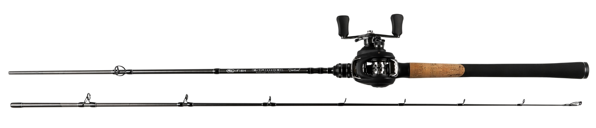 IFISH Pulsar Vertical Combo 6' 5". Bestående av 6' 5'', 192,5cm långt 2-delat vertikalspö i grafit med Powerflex teknologi, handtag av EVA-Pro och kork, öppet rullfäste med grafitinlägg, X-wrapping mm. I kombination med lågprofilrulle med grafitchassi, mycket lämplig för ex vertikalfiske efter gös mm. Magnetbroms, modernt utformat handtag i aluminium som ger en kompakt rulle. 5kg bromspaket. 8 + 1 kullager. 130m 0,35mm. Utväxling 6.1:1. Betesvikt upp till 65g.