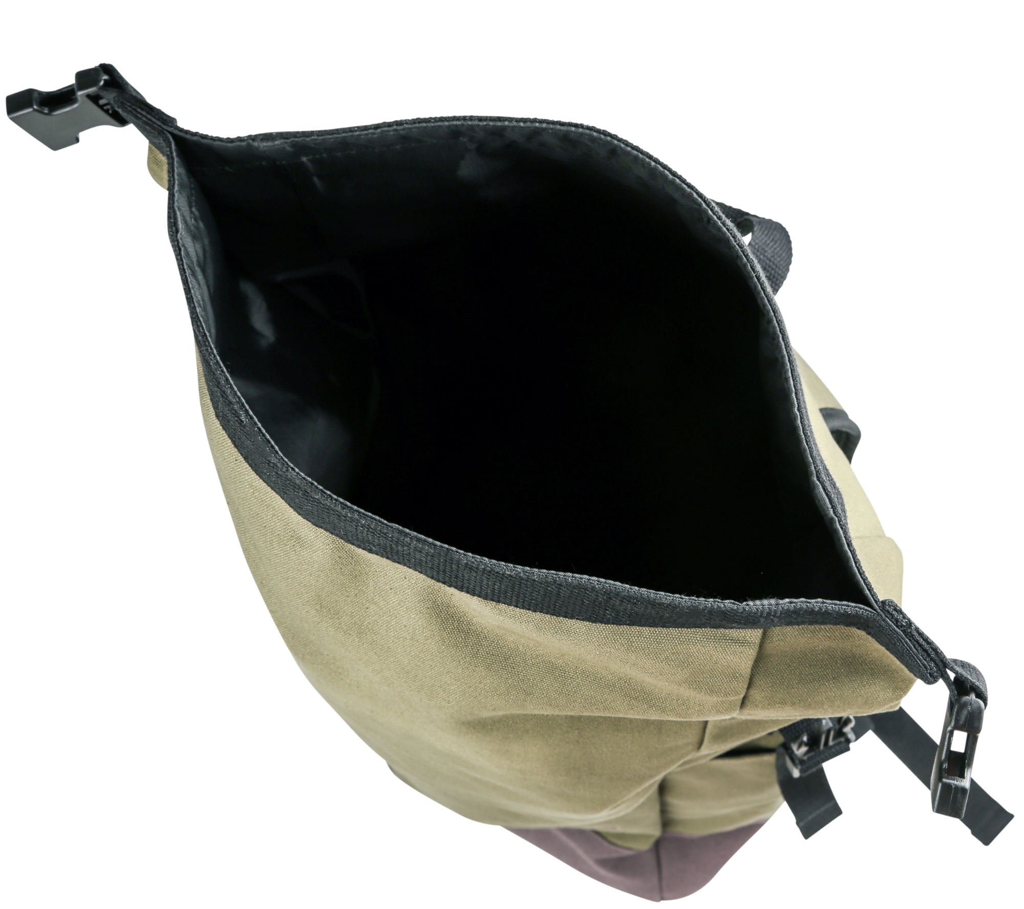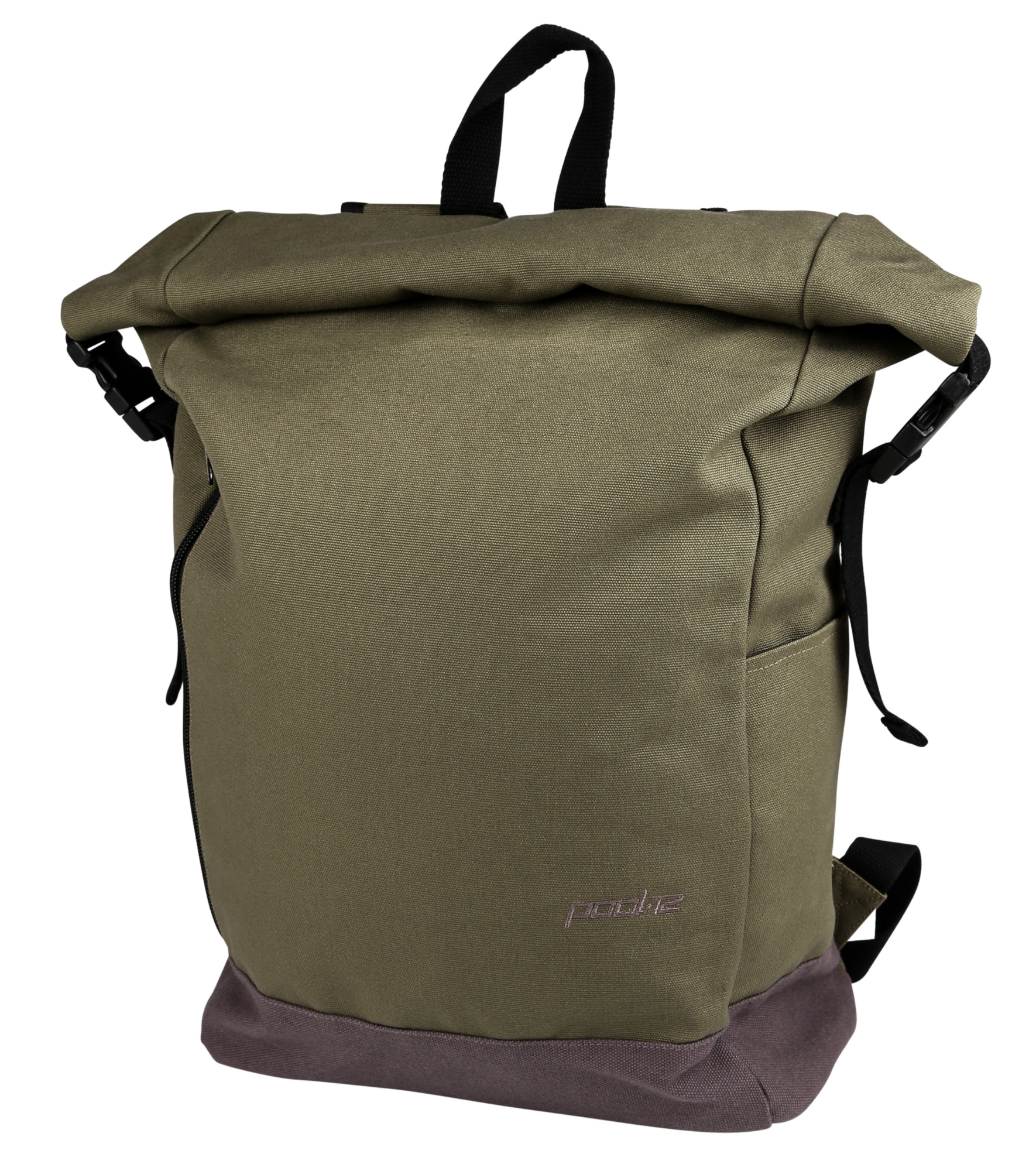 Pool 12 Roll Backpack. Ryggsäck i bomullskanvas som impregnerats för att få bra motstånd mot regn. Med generöst utrymme för det nödvändigaste och rullas ihop till önskad storlek. Storlek 31 x 15 x 53cm.
