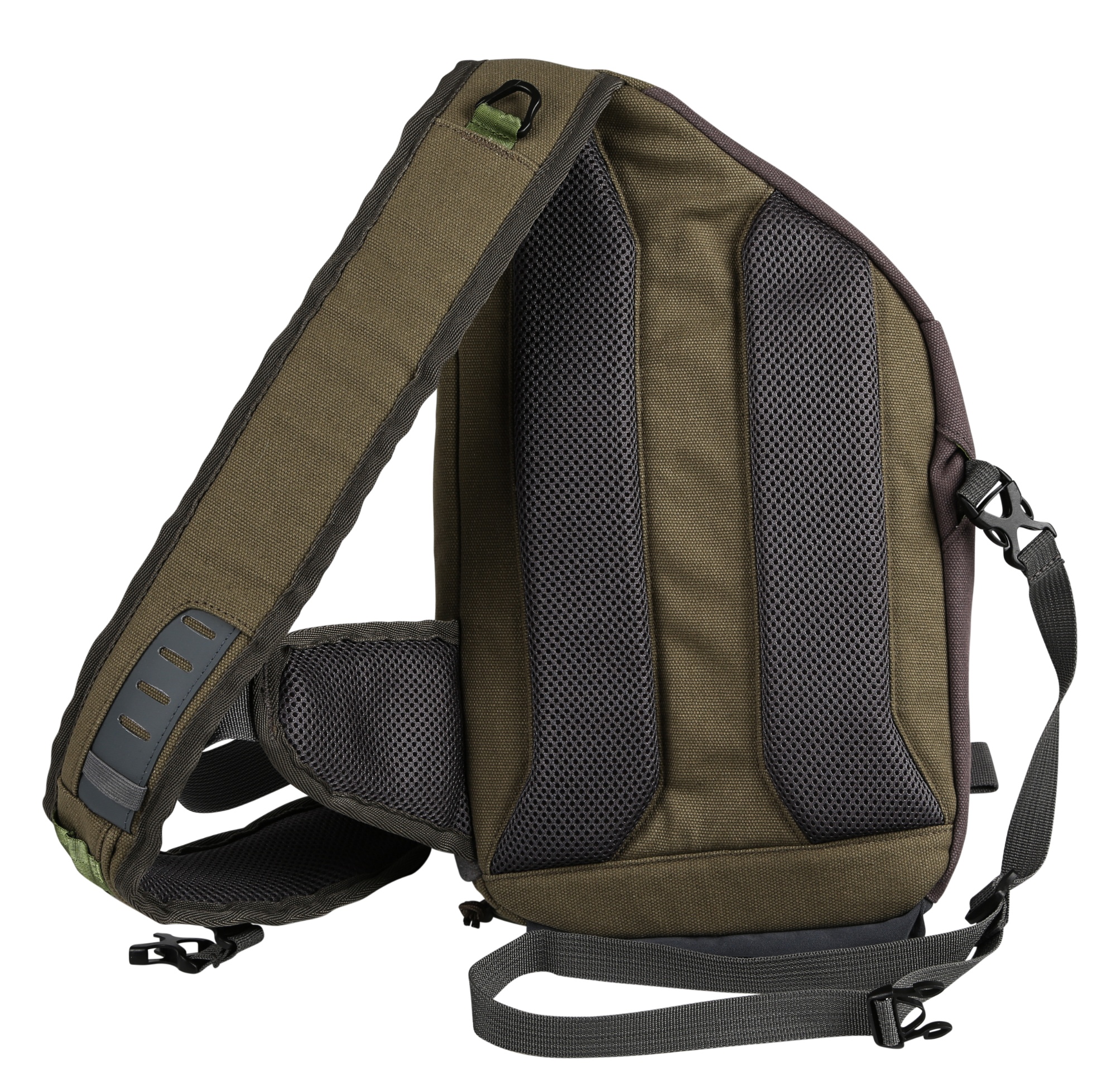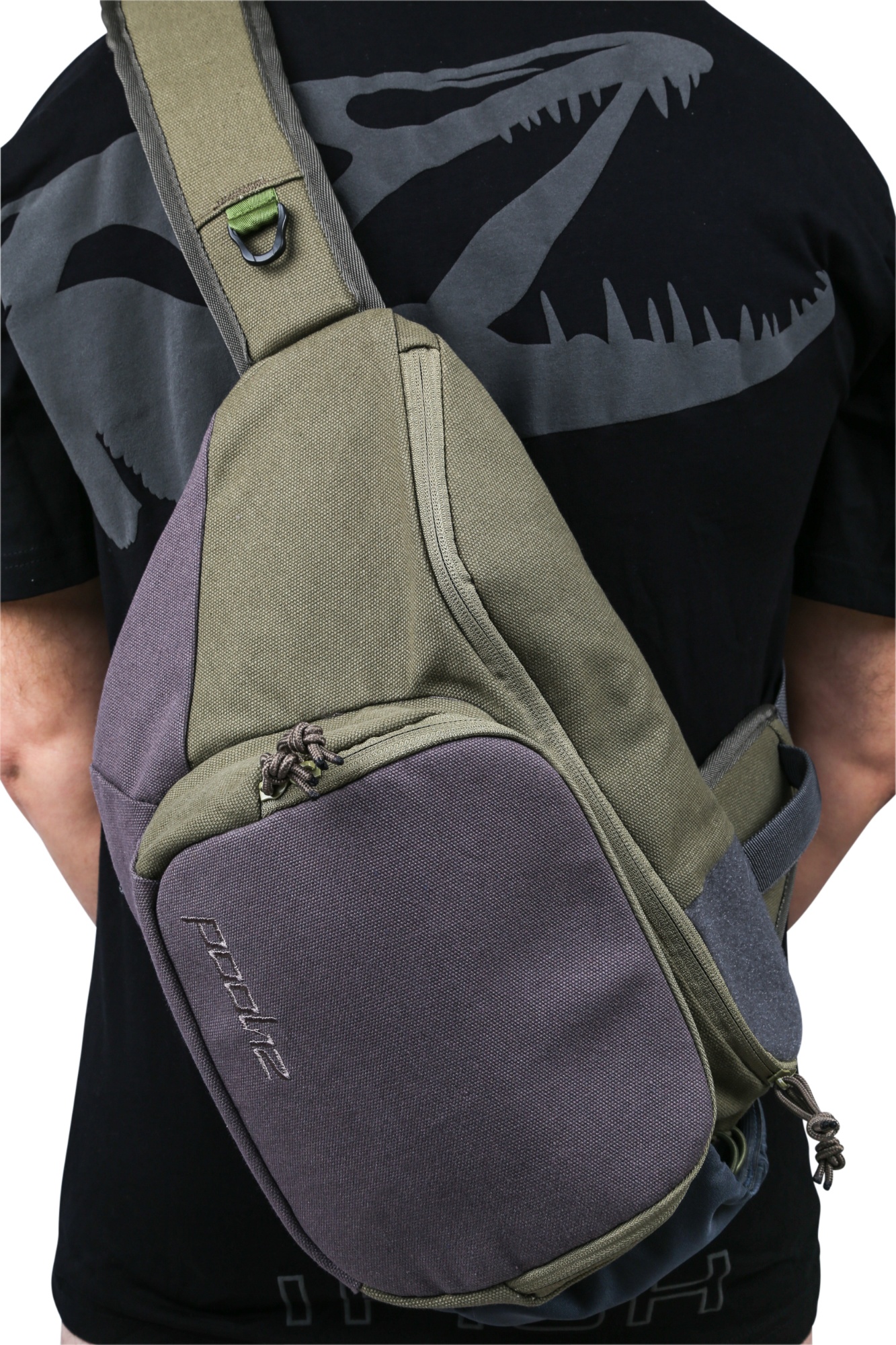 Pool 12 Sling Bag. Väska i bomullskanvas som impregnerats för att få bra motstånd mot regn. Ger fri rörlighet och avlastar axlar och rygg, vrid fram på bröstet och få full tillgång till innehållet. Storlek 22 x 15 x 40cm.