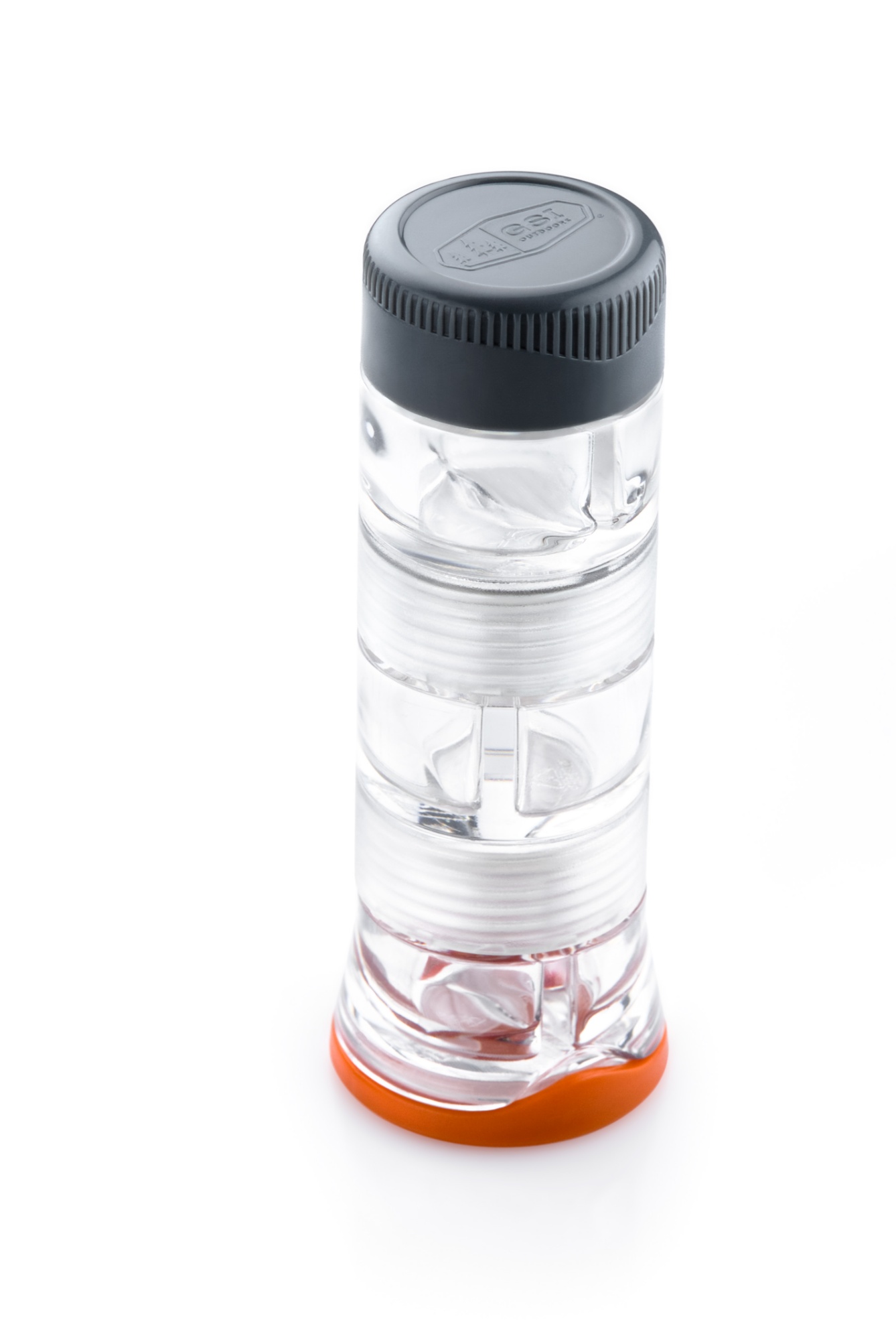 GSI Spice Missile - Fiffig kryddbehållare med plats för sex olika kryddor. Vattentät försegling borgar för torra och smakrika kryddor, och man fyller enkelt på de olika facken var för sig. Vikt: 60g Mått: 3,8 x 3,8 x 10,2cm.