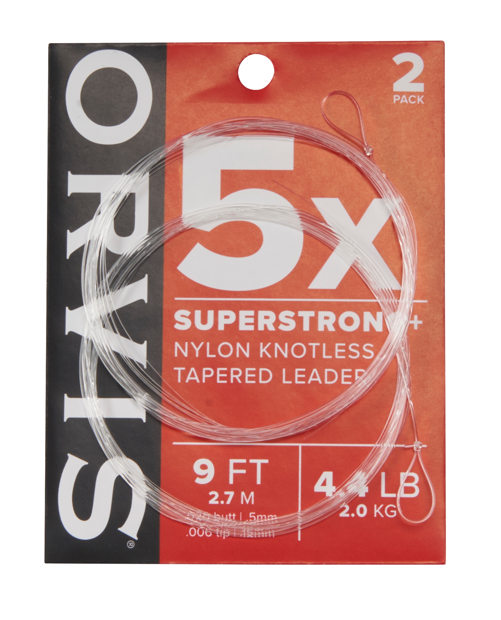 Orvis Super Strong Plus Leaders 9' 0X. Den våta knuthållfastheten hos SuperStrong™ är högre än något annat nylonmaterial, vilket ger extra trygghet när det verkligen gäller. Med en perfekt balanserad blandning av elasticitet, knutstyrka och smidighet är SuperStrong™ perfekta tafsar för allt flugfiske. Varje förpackning innehåller 2 tafsar. Längd 9’ 2,7m. 0X 0,28mm. 6,76kg.
