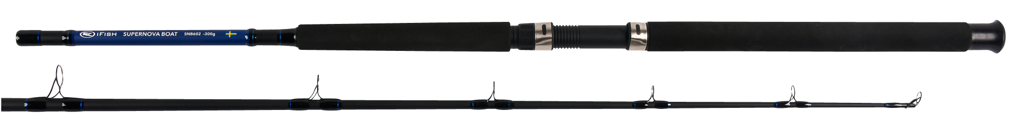 IFISH SuperNova Boat 6'. Havsfiskespö för fiske från båt, tillverkat i stryktålig glasfiber med robusta rullfästen och handtag i greppvänlig EVA. Längd 6' 180cm, 2-delat. Vikt 257g. Lämpligt för beten upp till 300g