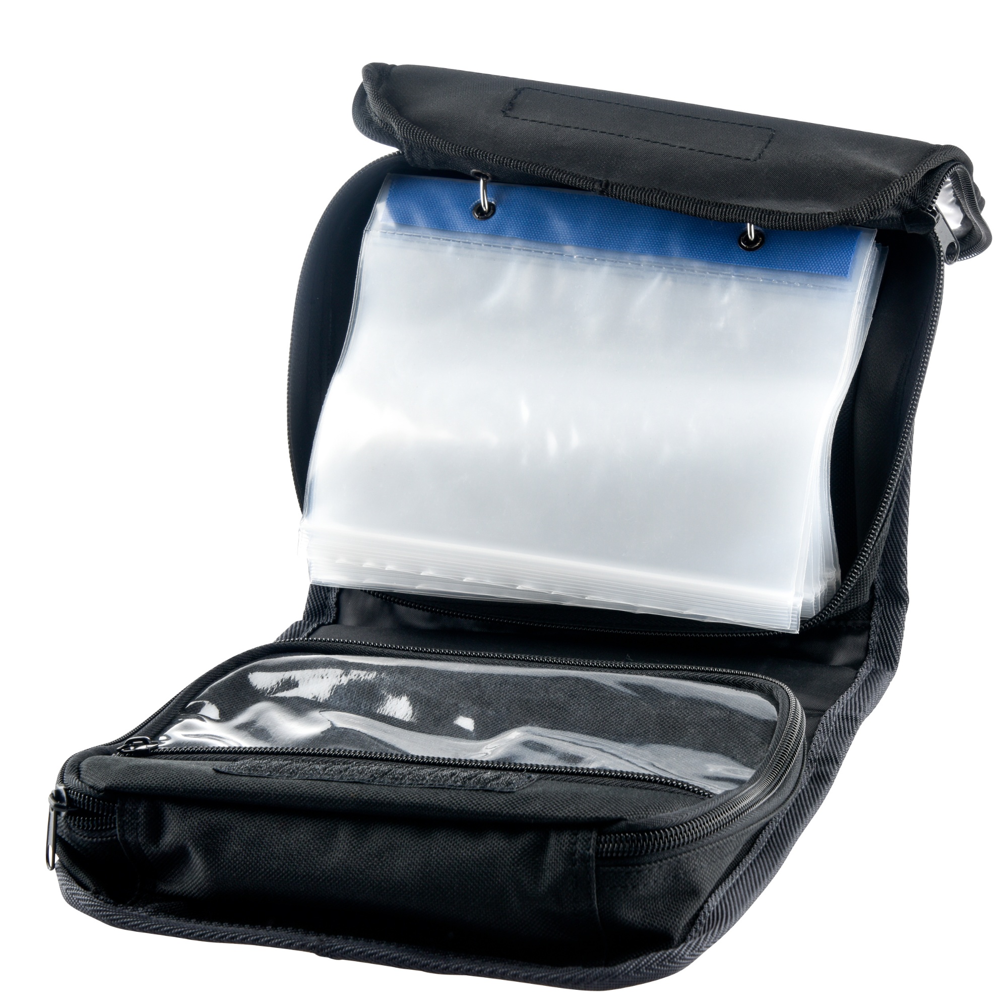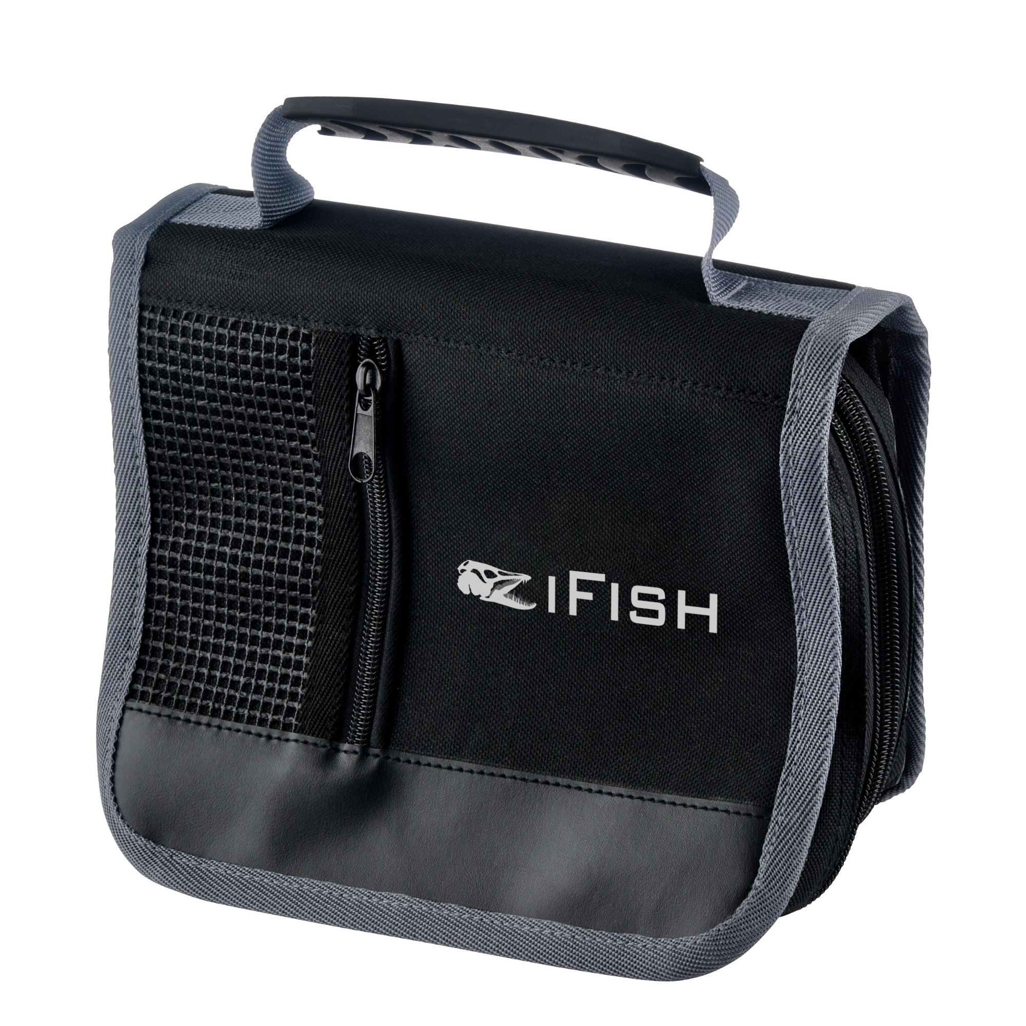 IFISH Tacklemap Double. Behändig dubbelsidig väska med 20 plastfickor och två invändiga fack. Håller ordning på t.ex. häcklor och annan utrustning. Passar även utmärkt till isfiske. Yttermått 18 x 22cm.