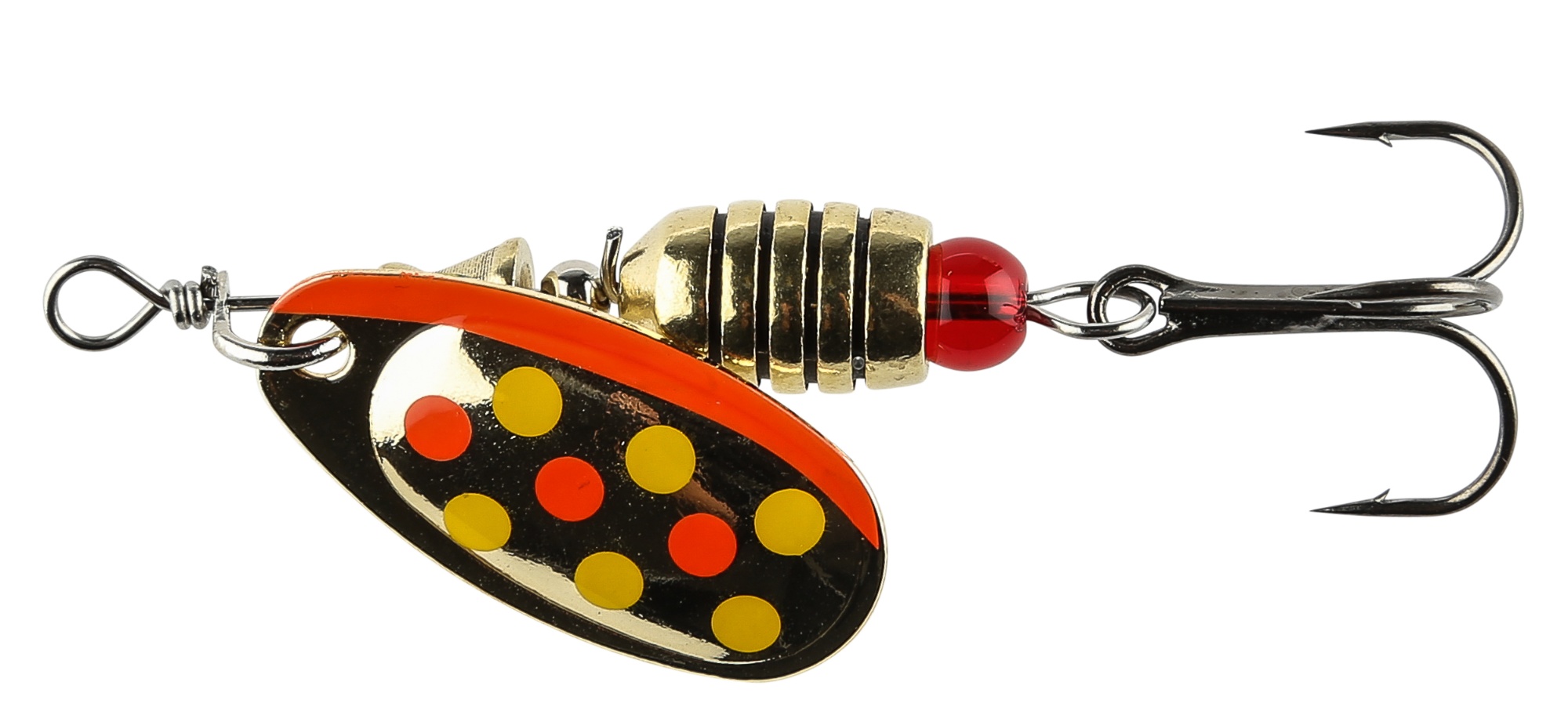 IFISH The Barrel 8g. The Barrel är en spinnare som tack vare den kompakta kroppen är väldigt lätt att kasta med och gör att man vid behov kan komma ner på djupet, även i strömmande vatten. Den har dessutom en fjäderring som gör det enkelt att vid behov byta krok. Vikt 8g. Färg Guld med prickar (GDOT)